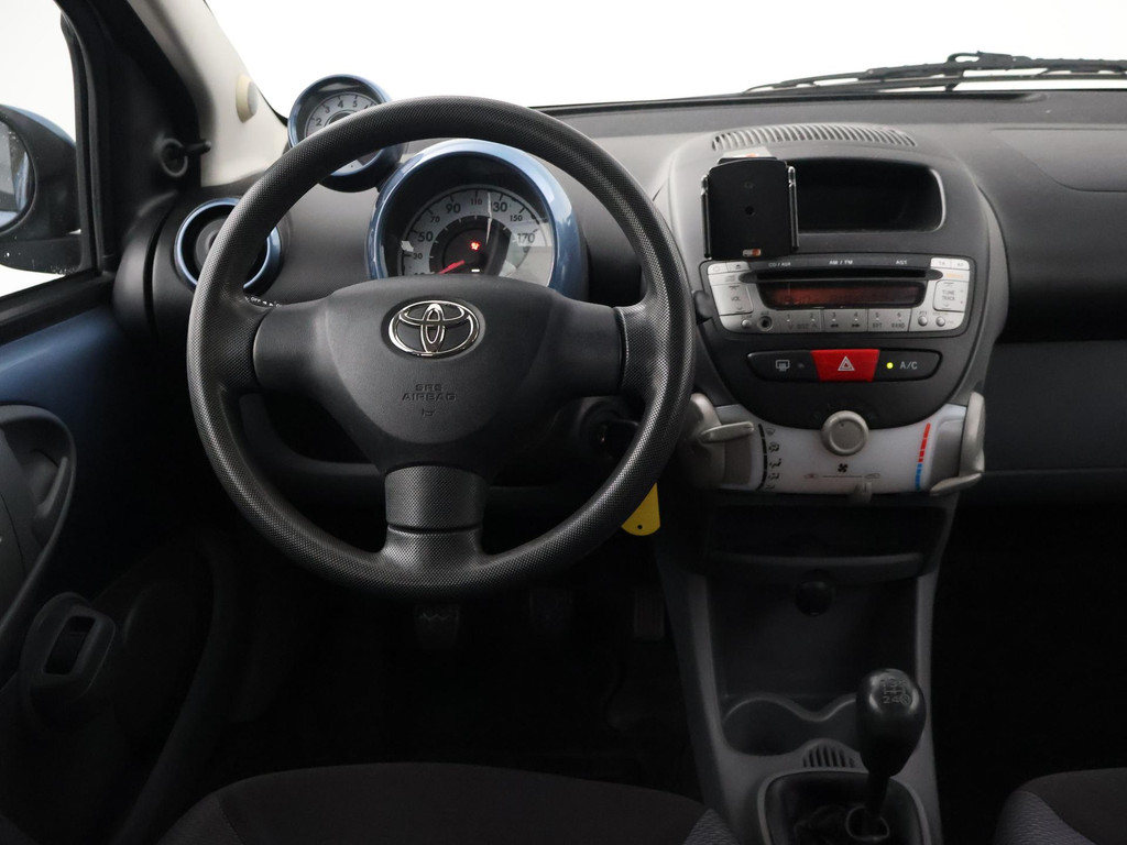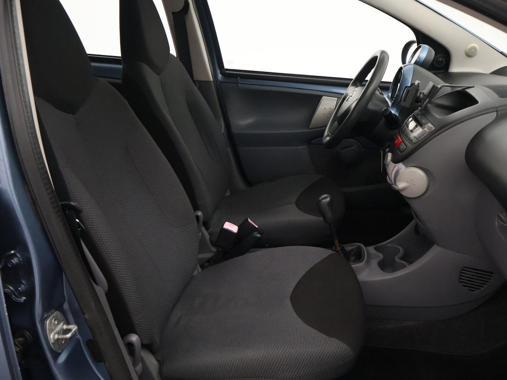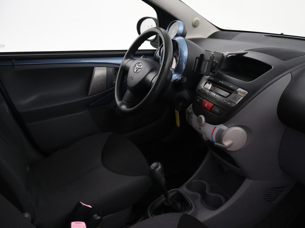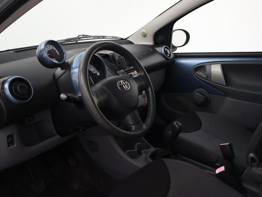 5-deurs Toyota Aygo 1.0 12V in het Pacific Blue metallic, APK tot 29-10-2026, met Airco, Elektrische ramen, Toerenteller, Afsluitbaar dashboardkastje, Radio/CD met Aux aansluiting, Centrale deurvergrendeling op afstandsbediening, Stuurbekrachtiging, Zwart interieur, Telefoonhouder, Instap bestuurdersstoel heeft een gat. De achterruitverwarming werkt niet.