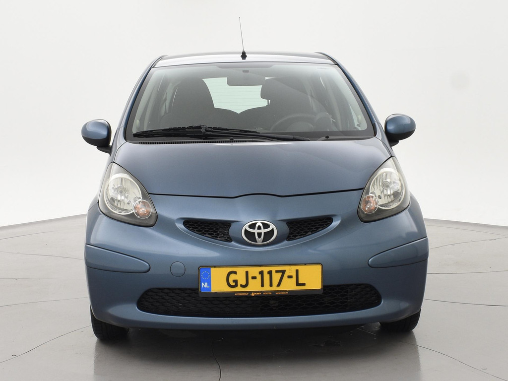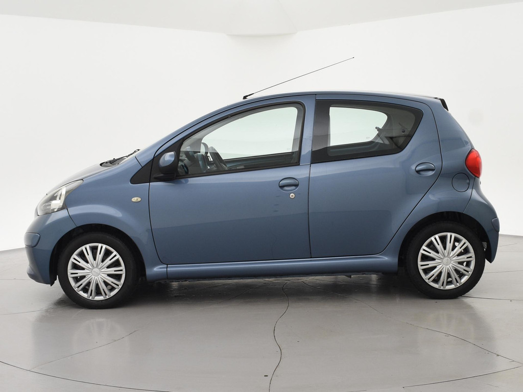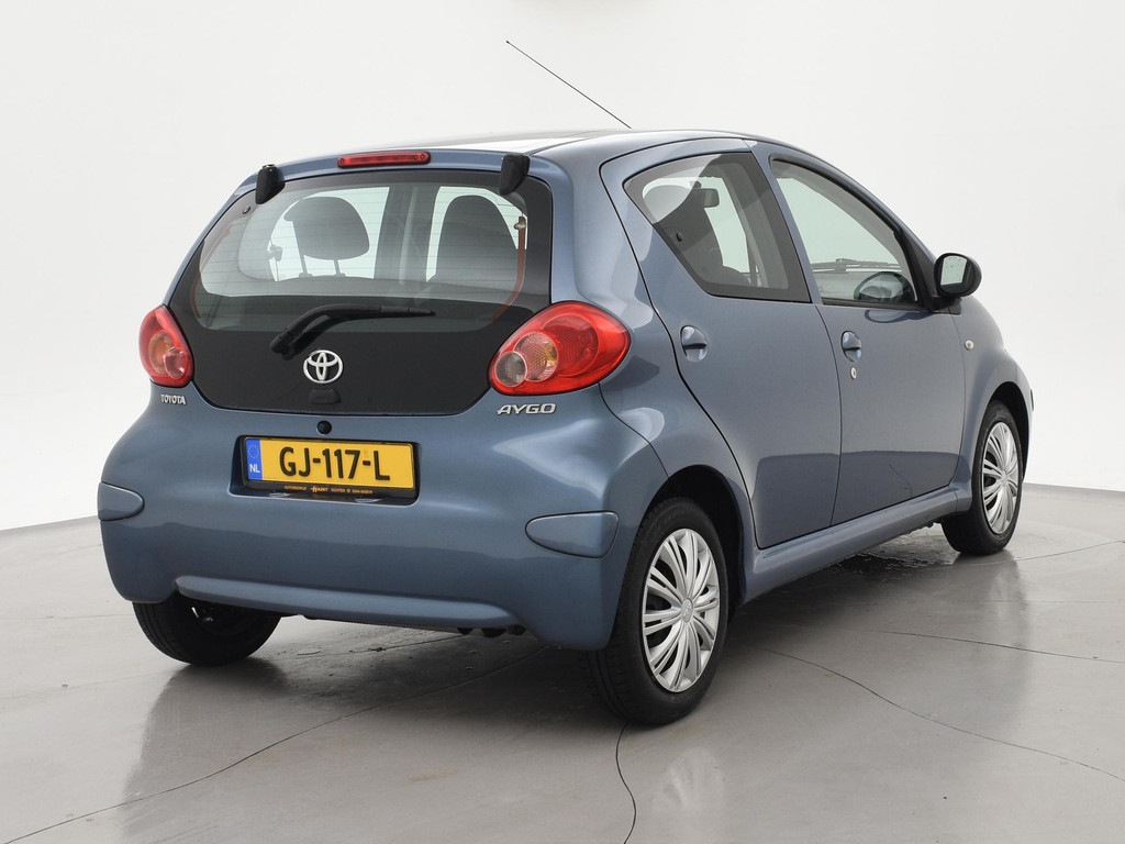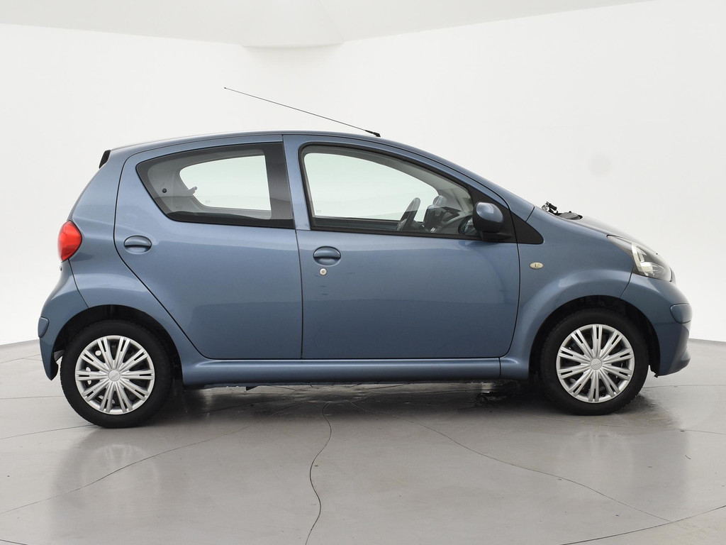 5-deurs Toyota Aygo 1.0 12V in het Pacific Blue metallic, APK tot 29-10-2026, met Airco, Elektrische ramen, Toerenteller, Afsluitbaar dashboardkastje, Radio/CD met Aux aansluiting, Centrale deurvergrendeling op afstandsbediening, Stuurbekrachtiging, Zwart interieur, Telefoonhouder, Instap bestuurdersstoel heeft een gat. De achterruitverwarming werkt niet.