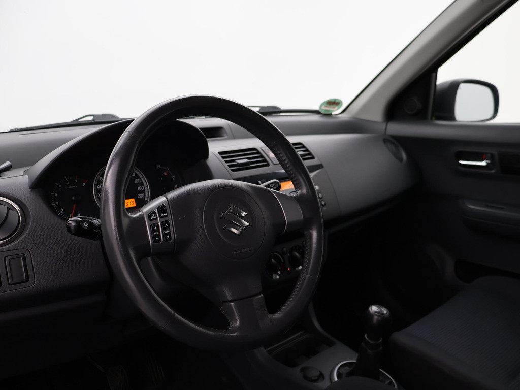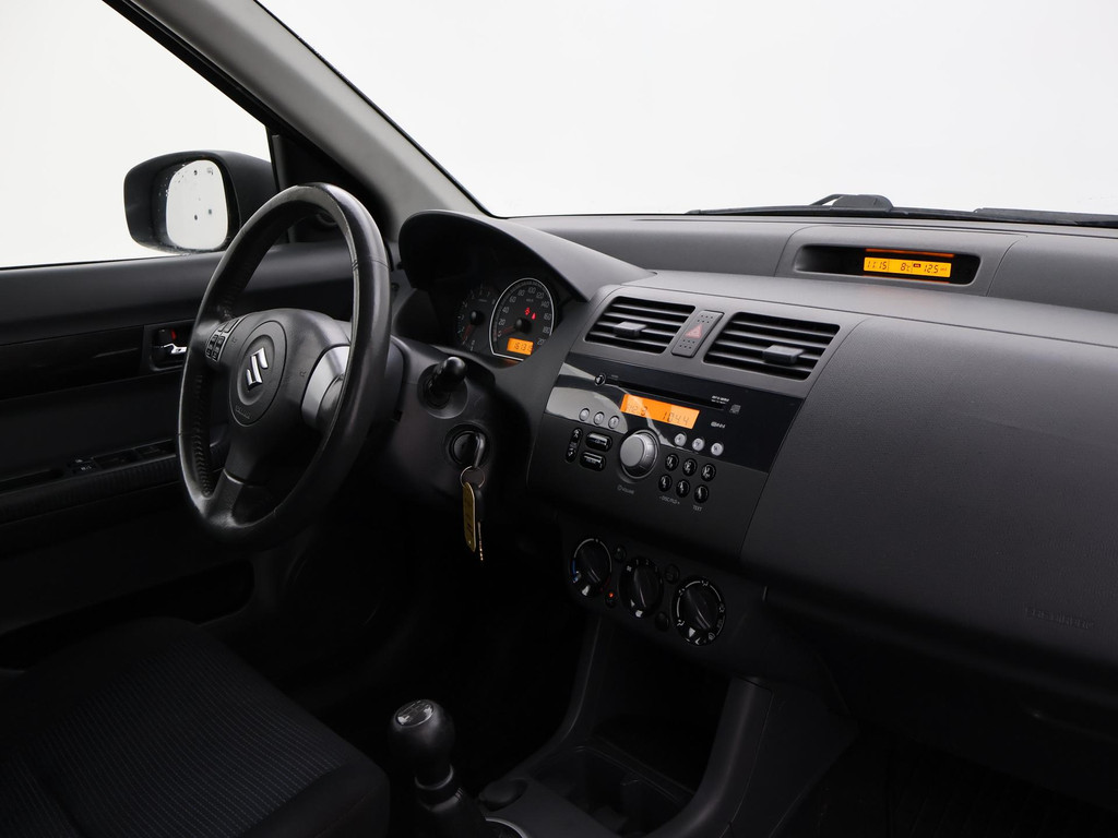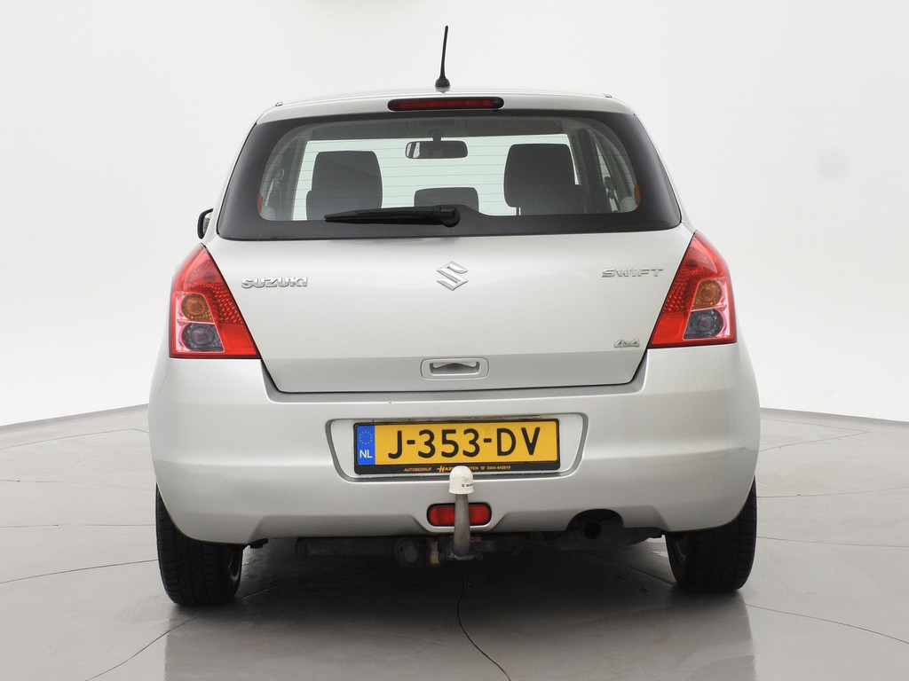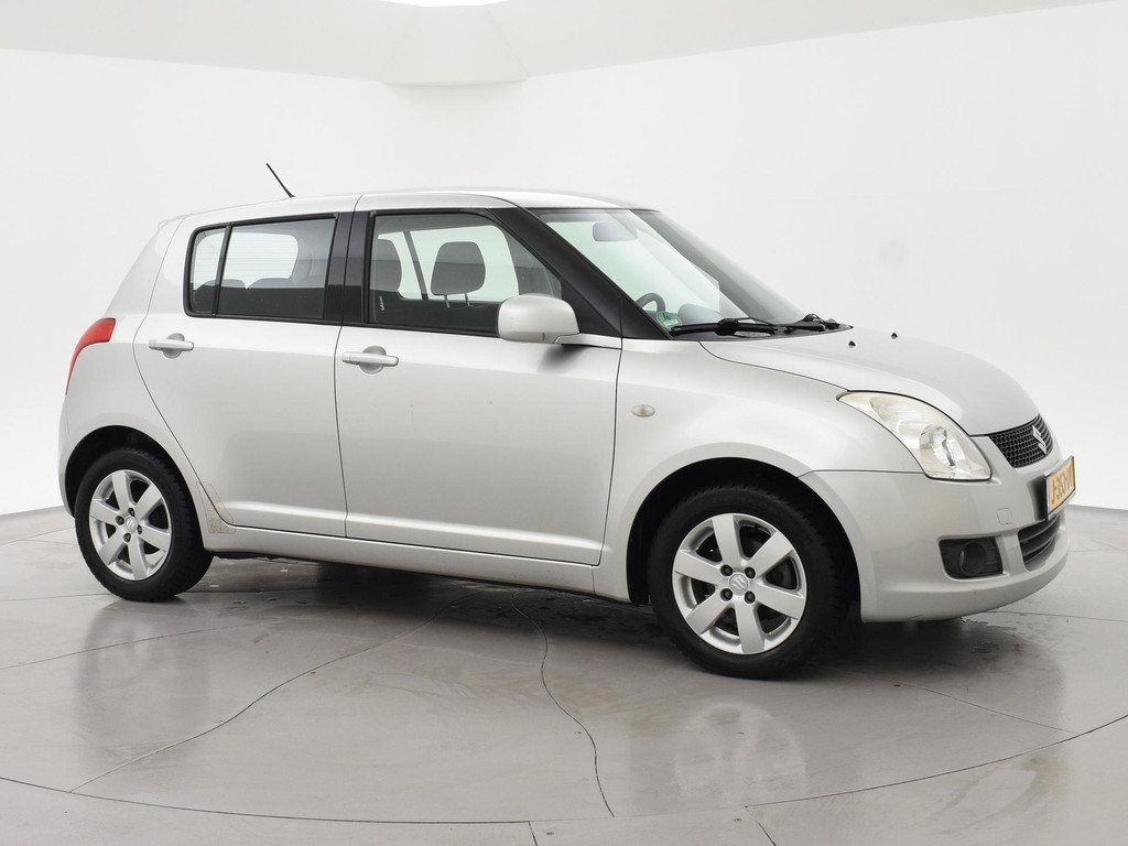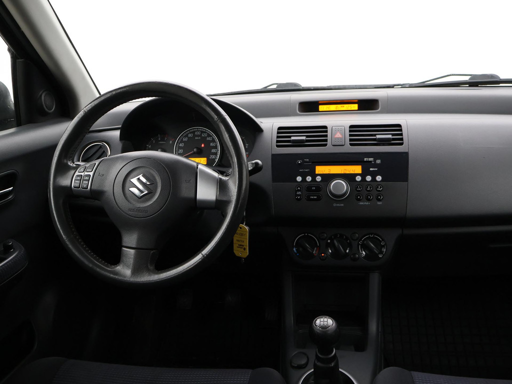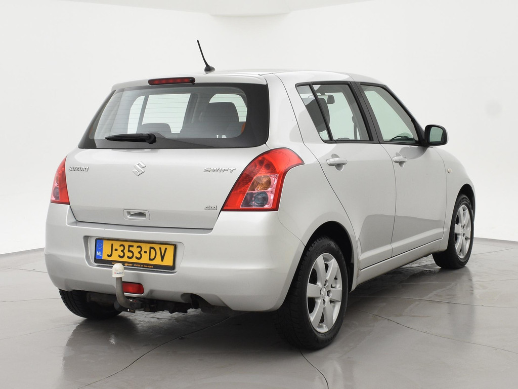 Permanent vierwielaangedreven Suzuki Swift 1.3 in de luxe Exclusive uitvoering met Trekhaak (1000 kg trekgewicht op kenteken), Stoelverwarming, Airco, Radio/CD met stuurwielbediening, Leder stuurwiel, Mistlampen, Onderhoudsboekje aanwezig en ingevuld.