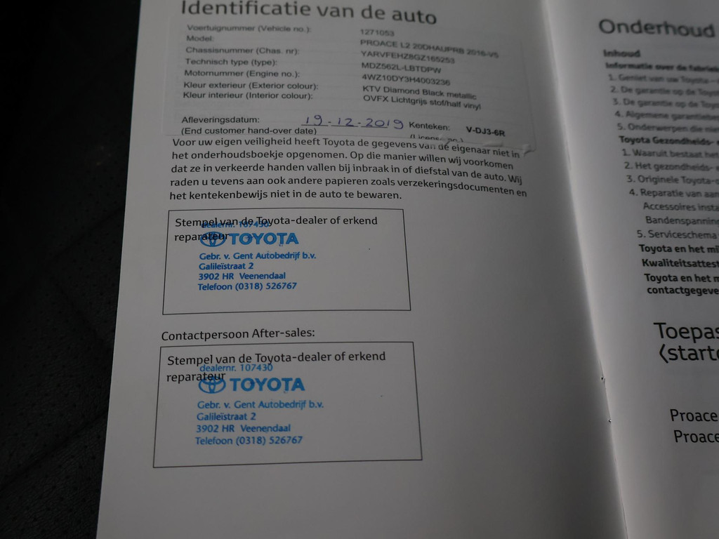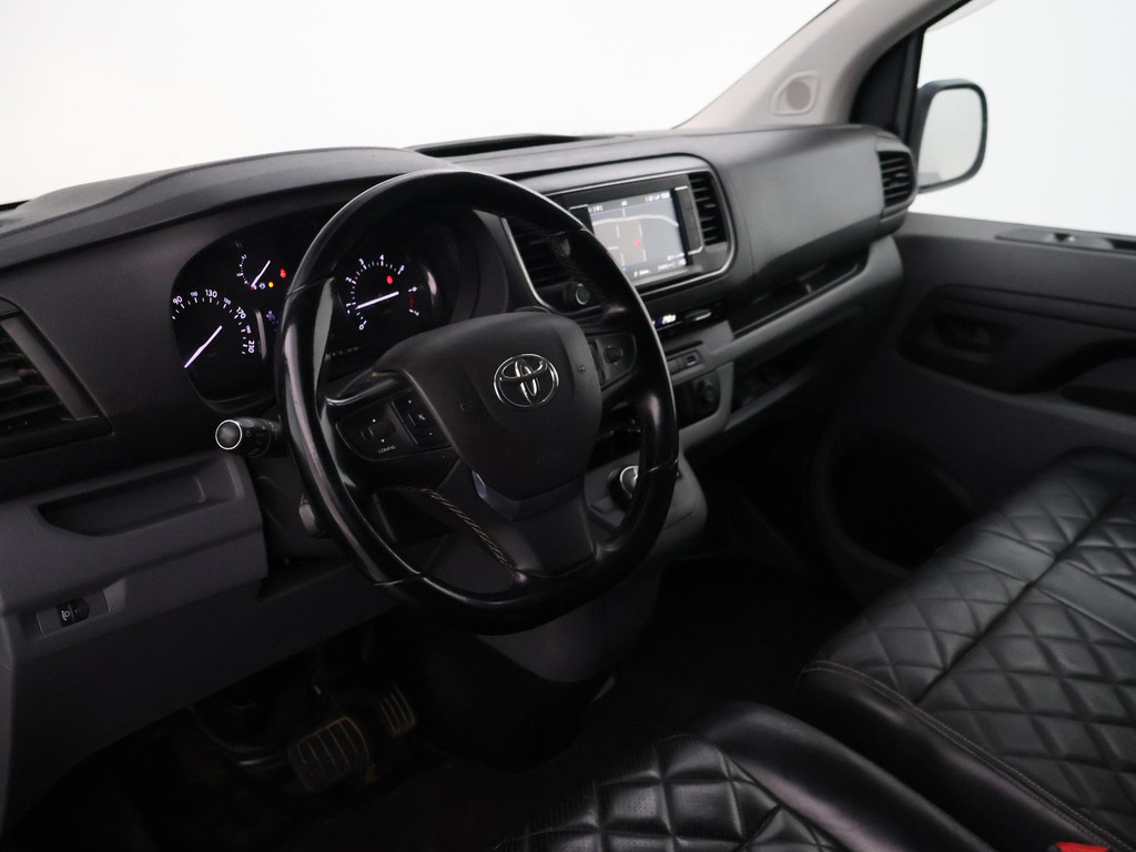 Black Platinum uitvoering dat is een speciale uitvoering wat in de basis een Professional is met uitbreiding van Zwart volledig leder interieur die in dit geval ook nog uitgebreid is met stoelverwarming, 17 inch lichtmetalen velgen, Chromen buitenspiegels, Treeplanken / Step bars. Verlengde uitvoering, Verder heeft de bus een trekhaak met 2500 kg trekgewicht op kenteken, Navigatie, Cruise control, Achteruitrijcamera, Climate control, Bluetooth met audiostreaming, Parkeersensoren, Mistlampen, Elektrisch inklapbare buitenspiegels, DAB+ Digitale radio, Verwarmde buitenspiegels, Toyota dealer onderhouden, Prijs is exclusief BTW.