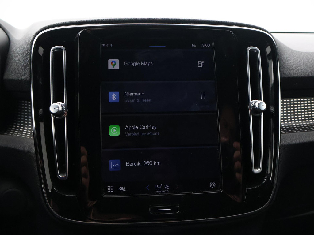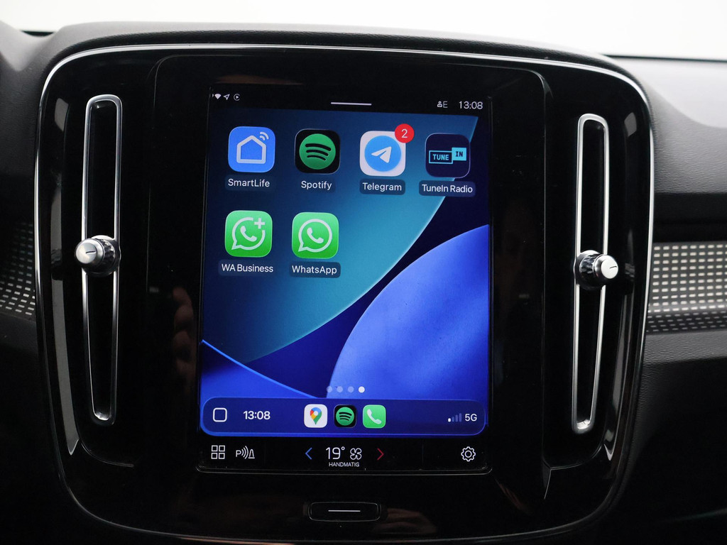 Volledig elektrische XC40 met 408 PK, AWD vierwielaandrijving automaat, BTW verrekenbaar, Onderhoudsboekje compleet ingevuld aanwezig, 19 inch lichtmetalen velgen, Two-Tone Chrystal White + zwart dak en zwarte spiegels, Afneembare trekhaak met 1500 kg trekgewicht op kenteken, Privacy glass, Zwart half leder interieur met verlengbaar zitvlak, Beeldvullende Apple Carplay / Android Auto appstreaming Google Maps, Flitsmeister, Spotify, Whatsapp etc, Full LED koplampen, LED achterlichten, Parkeersensoren, Cruise control, Zwarte hemelbekleding, DAB+ digitale radio, Navigatie met Google Maps, Youtube, Bluetooth met audiostreaming, Leder stuurwiel met audiobediening.