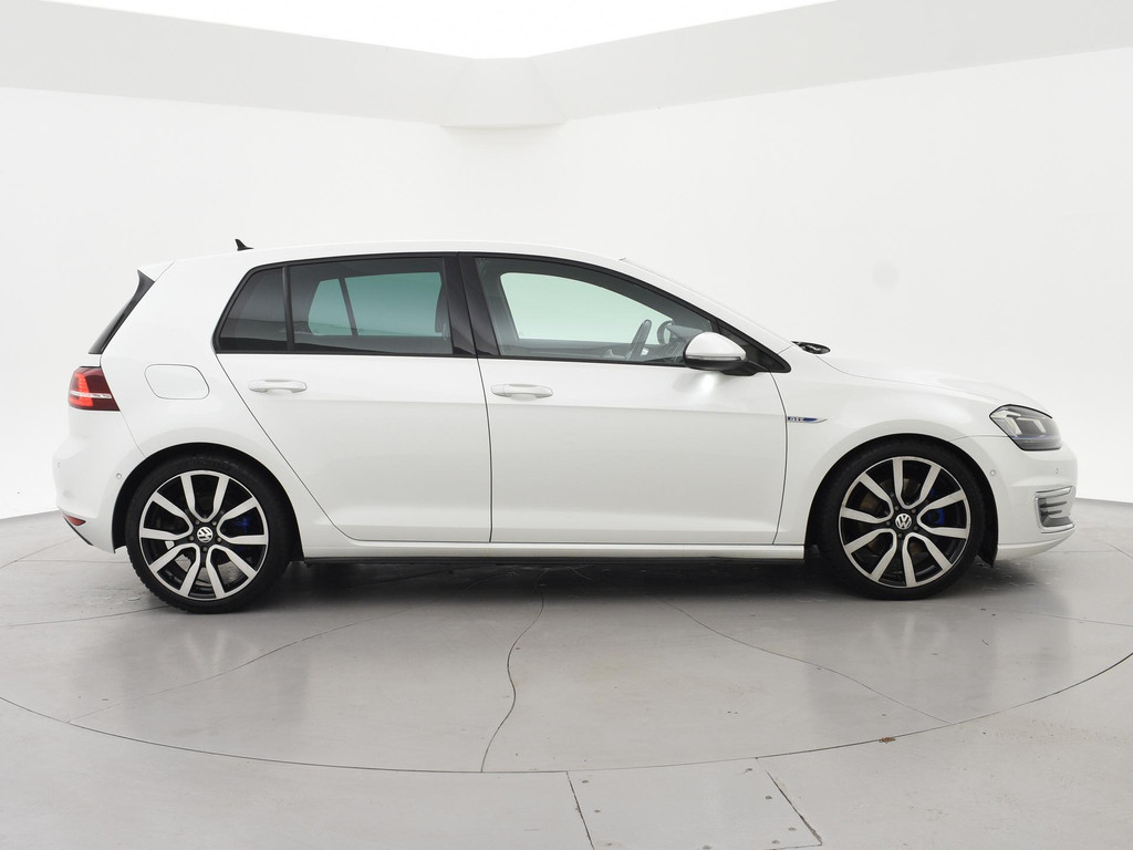 Origineel Nederlandse Volkswagen Golf 1.4 TSI GTE 204 PK DSG Automaat, Achteruitrijcamera, LED koplampen, LED achterlichten, LED dagrijverlichting, Adaptive cruise control met regelbare afstand op de voorganger, Navigatiesysteem met kaartweergave, Dodehoek detectie, DAB Digitale radio, Multifunctioneel leder stuurwiel met F1 schakelflippers, Laptimer, Lichtmetalen velgen.