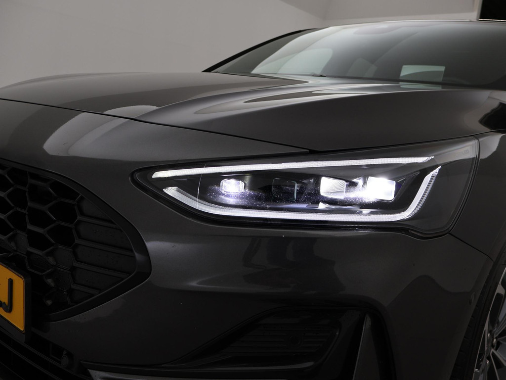 Origineel Nederlandse Focus hatchback met een RDW nieuwprijs van 41.563 euro met de sterkere 155 PK motor 1.0 EcoBoost Hybrid met 6 versnellingen, Magnetic metallic exterieurkleur, ST-Line X uitvoering met 18 inch lichtmetalen velgen en rode remklauwen, Bang & Olufson premium sound, Head-up display, Adaptive cruise control, Nieuwste type en grootste touch-screen scherm 13,2 inch SYNC4 met Navigatie, Apple Carplay / Android Auto appstreaming Google Maps, Flitsmeister, Spotify Whatsapp etc, Bluetooth en DAB+ Digitale radio. Winter pack met Stoelverwarming, Stuurwielverwarming, Elektronisch verwarmde voorruit, Climate control, Digitale cockpit / digitale tellers 12,3 inch cockpit, Lijnassistentie, Dodehoek assistentie, Full LED Koplampen, LED achterlichten, Privacy glass, Parkeersensoren, Donkere hemelbekleding, Draadloze telefoonlader, LED mistlampen, Spraakbediening, Zwarte sportstoelen met rood stiksel, Leder sportstuurwiel met rood stiksel, Achteruitrijcamera, Snelheidsafhankelijke stuurbekrachtiging, Elektrisch inklapbare buitenspiegels.