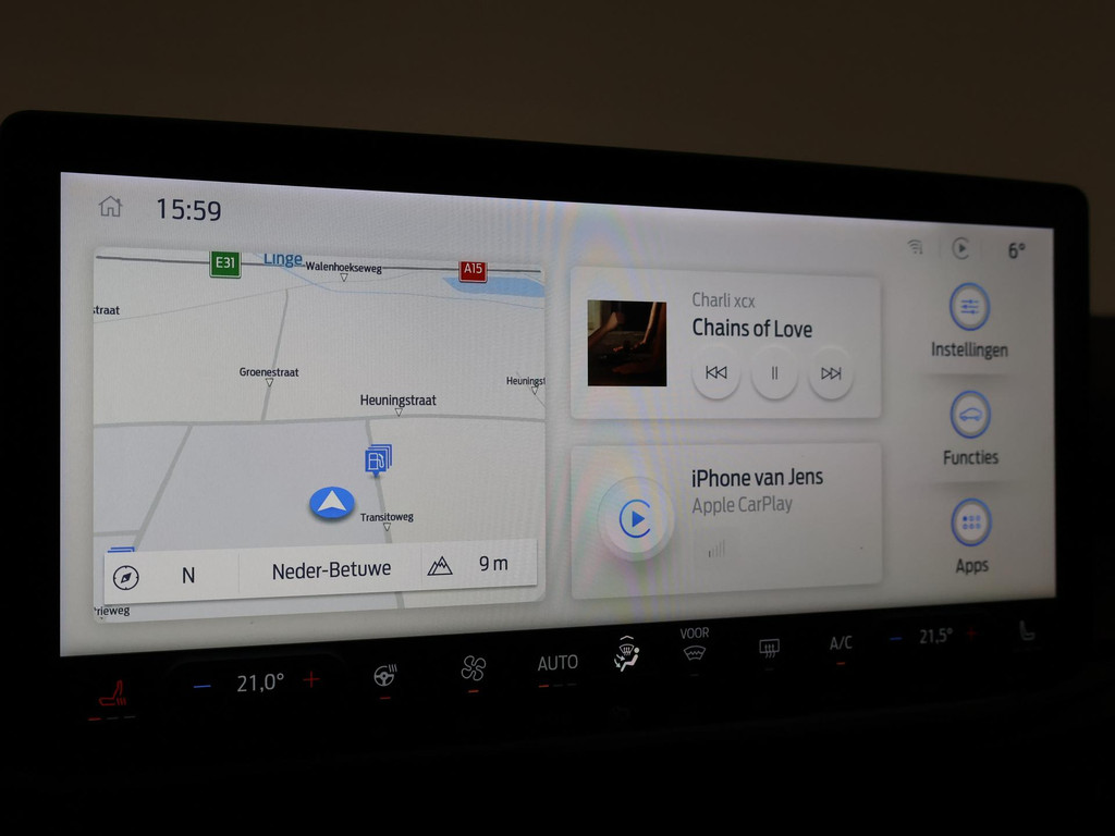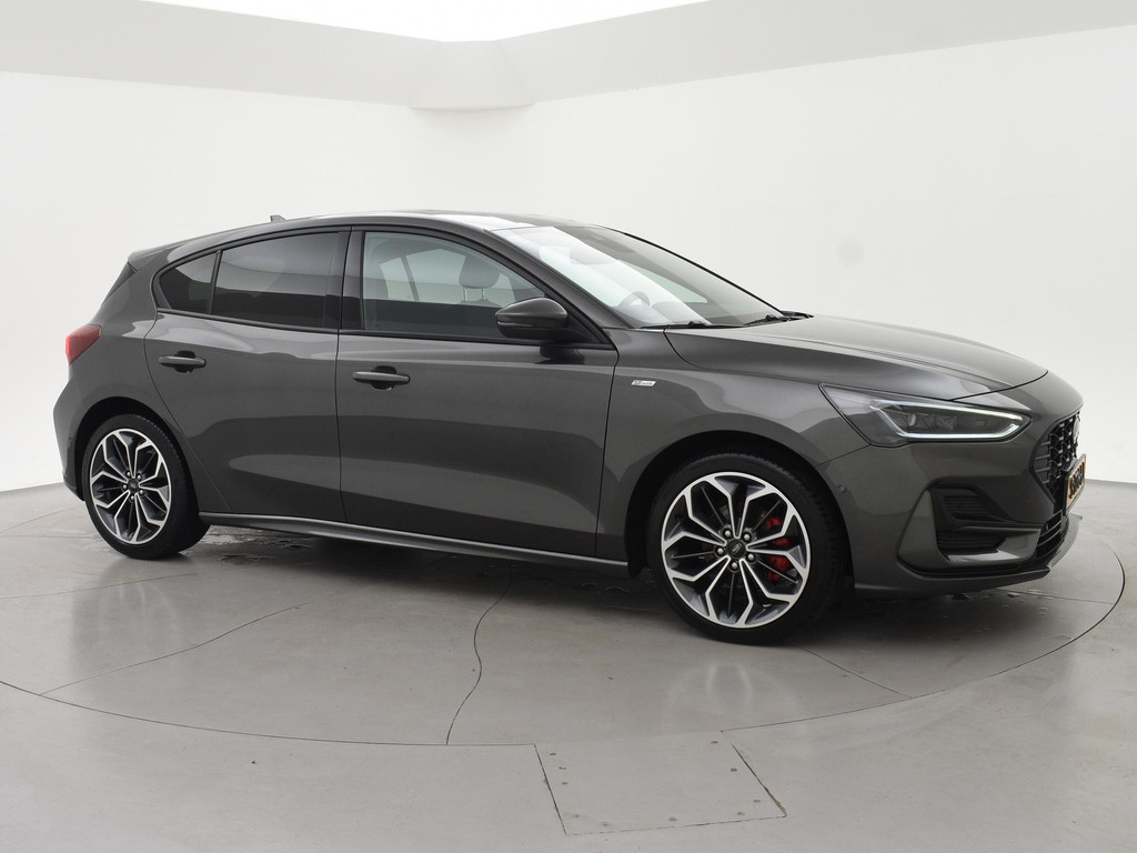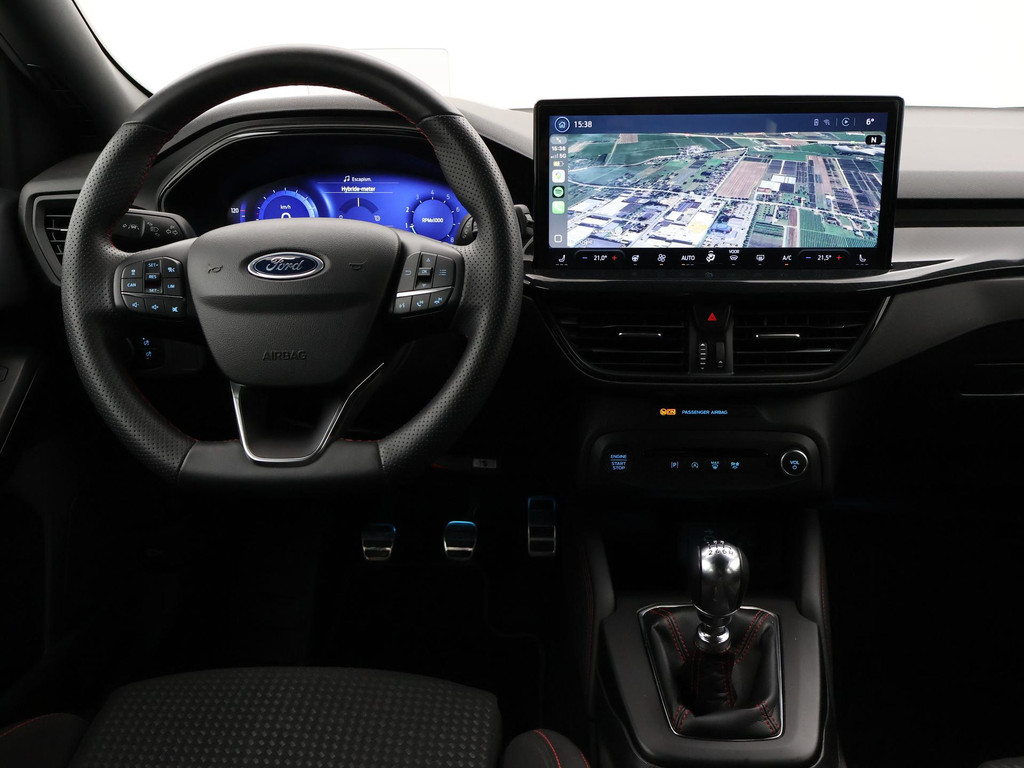 Origineel Nederlandse Focus hatchback met een RDW nieuwprijs van 41.563 euro met de sterkere 155 PK motor 1.0 EcoBoost Hybrid met 6 versnellingen, Magnetic metallic exterieurkleur, ST-Line X uitvoering met 18 inch lichtmetalen velgen en rode remklauwen, Bang & Olufson premium sound, Head-up display, Adaptive cruise control, Nieuwste type en grootste touch-screen scherm 13,2 inch SYNC4 met Navigatie, Apple Carplay / Android Auto appstreaming Google Maps, Flitsmeister, Spotify Whatsapp etc, Bluetooth en DAB+ Digitale radio. Winter pack met Stoelverwarming, Stuurwielverwarming, Elektronisch verwarmde voorruit, Climate control, Digitale cockpit / digitale tellers 12,3 inch cockpit, Lijnassistentie, Dodehoek assistentie, Full LED Koplampen, LED achterlichten, Privacy glass, Parkeersensoren, Donkere hemelbekleding, Draadloze telefoonlader, LED mistlampen, Spraakbediening, Zwarte sportstoelen met rood stiksel, Leder sportstuurwiel met rood stiksel, Achteruitrijcamera, Snelheidsafhankelijke stuurbekrachtiging, Elektrisch inklapbare buitenspiegels.