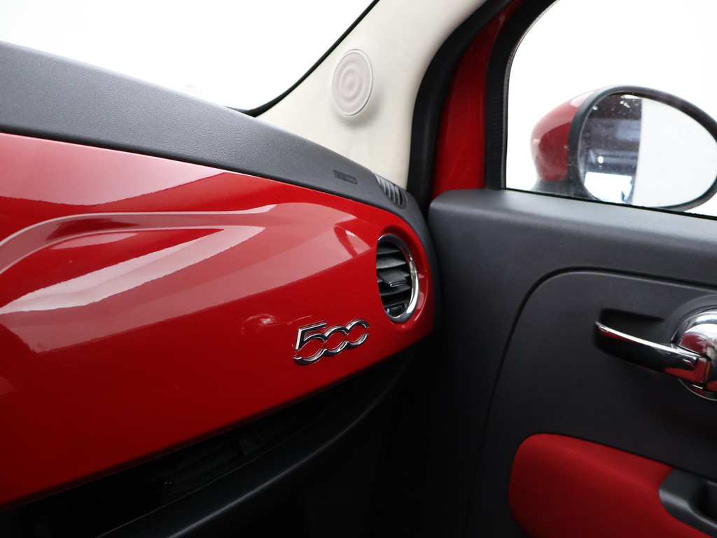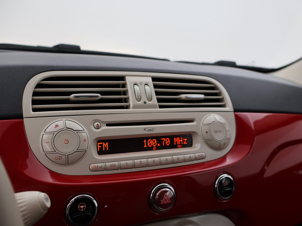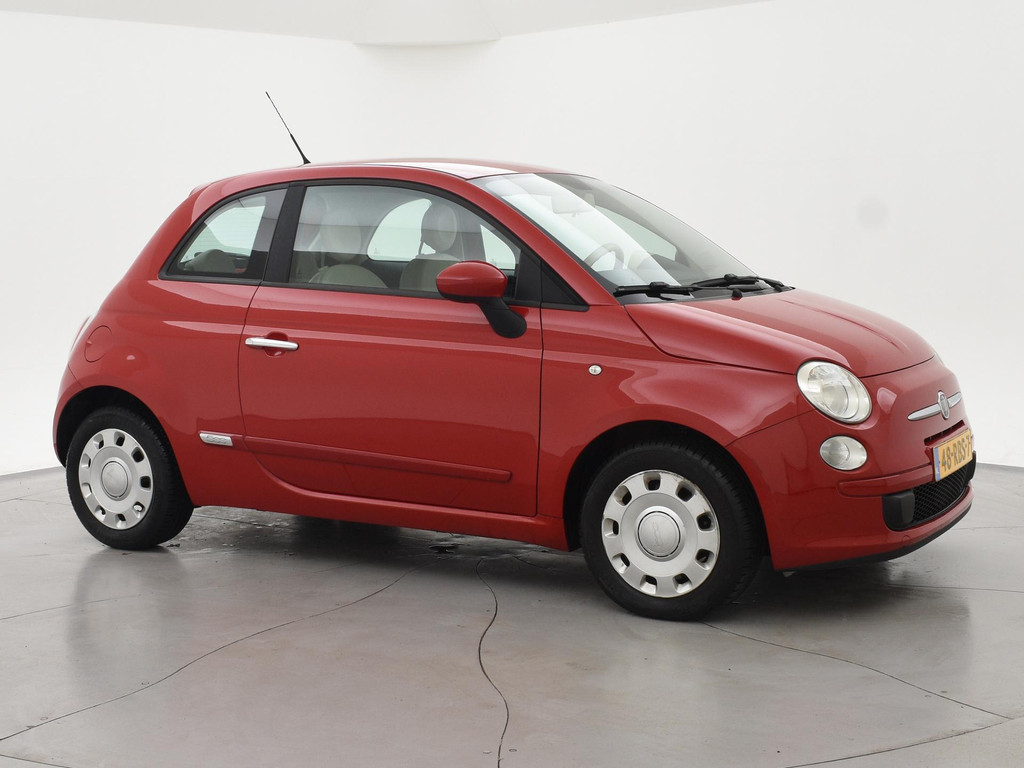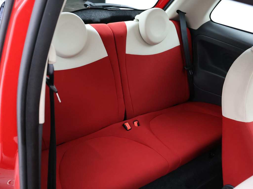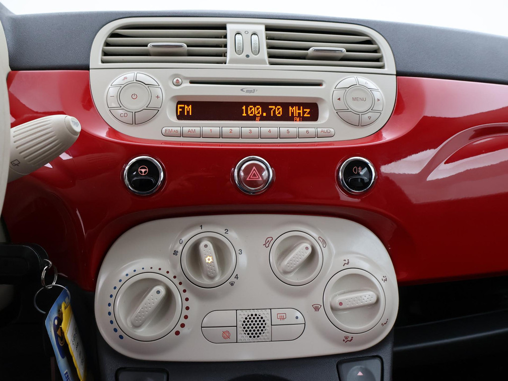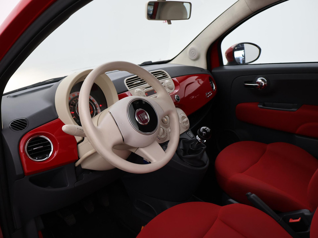 4-cilinder Fiat 500 1.2 benzine in het rood met rood/wit interieur, Airco, Radio/CD, Elektrische ramen, Origineel Nederlandse auto.