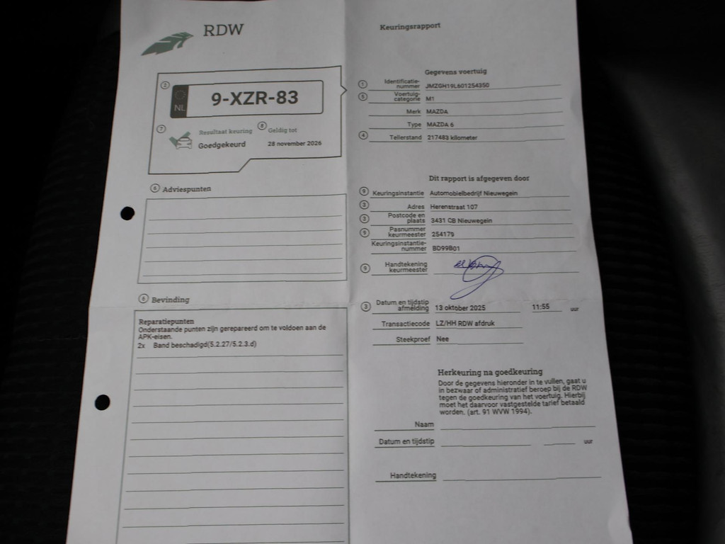 2.5 S-VT GT-M Mazda 6 Handgeschakeld met 6 versnellingen, Luxe uitvoering, Bose premium sound, Trekhaak, Stoelverwarming met meerdere standen, Half-leder interieur, Navigatiesysteem met kaartweergave, Parkeersensoren, Lichtmetalen velgen, Multifunctioneel stuurwiel, Elektrische ramen voor + achter, Elektrisch inklapbare buitenspiegels, Climate control, Privacy glass, Start/stop systeem.