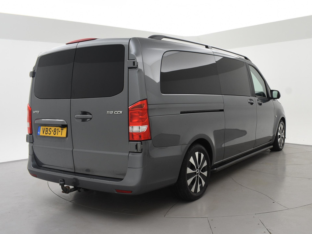 Vito Extra Lang 119 CDI 190 PK Automaat, Donkergrijs metallic met lichtmetalen velgen, Privacy glass en glasslook panelen dus super uitstraling bus, 2500 kg trekgewicht trekhaak, Apple Carplay / Android Auto appstreaming Navigatie, Apple Carplay, Android Auto, Achteruitrijcamera, Bluetooth etc, Cruise control, Airco, Dakrailing, Zwarte sidebar, Onderspoiler voorbumper, Gestoffeerde laadruimte met afgewerkte wielkuipen, Zijwandbescherming laadruimte (zeer nette laadruimte), Comfortstoelen met armleuningen, Dynamic rijmodus, Prijs is exclusief BTW.