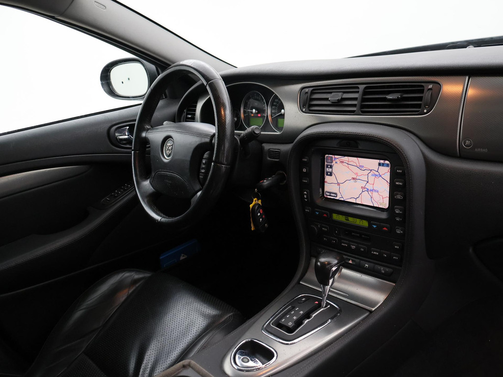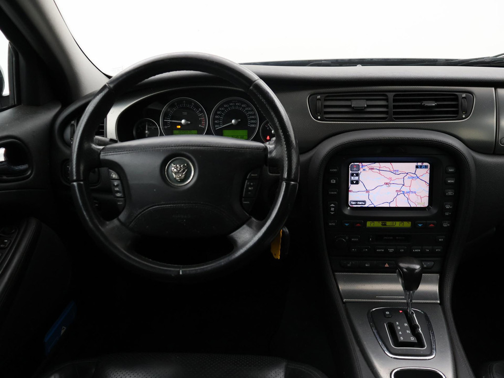 Jaguar S-Type 3.0 V6 243 PK Sport automaat, Elektrisch schuif/kanteldak, Volledig leder interieur met stoelverwarming, Navigatiesysteem met kaartweergave, Cruise control, Climate control, Lichtmetalen velgen, Onderhoudsboekje afgestempeld aanwezig.