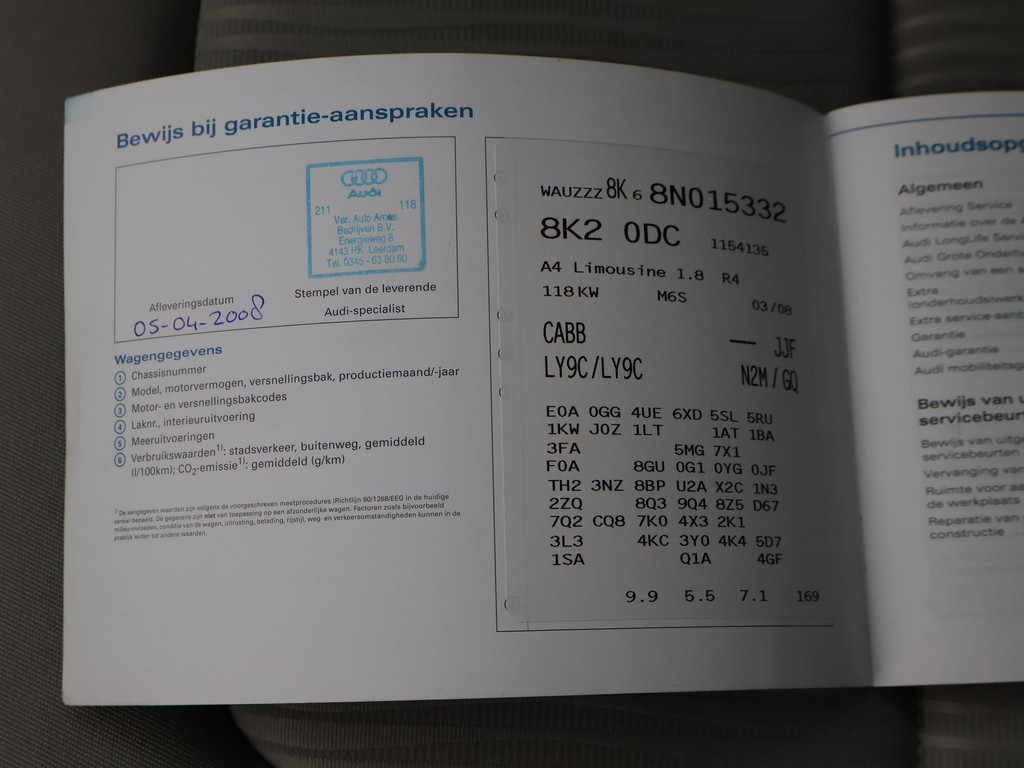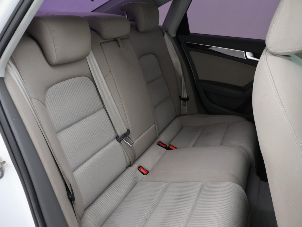 Nieuw model A4 1.8 TFSI benzine 160 PK met 6 versnellingen, Origineel Nederlandse auto in het Ibiswit met lichtgrijs interieur, Navigatie, Privacy glass, Stoelverwarming, Climate control, Parkeersensoren, Cruise control.