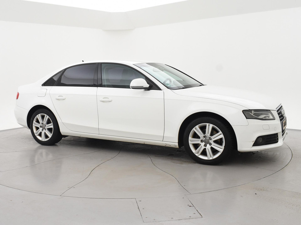 Nieuw model A4 1.8 TFSI benzine 160 PK met 6 versnellingen, Origineel Nederlandse auto in het Ibiswit met lichtgrijs interieur, Navigatie, Privacy glass, Stoelverwarming, Climate control, Parkeersensoren, Cruise control.
