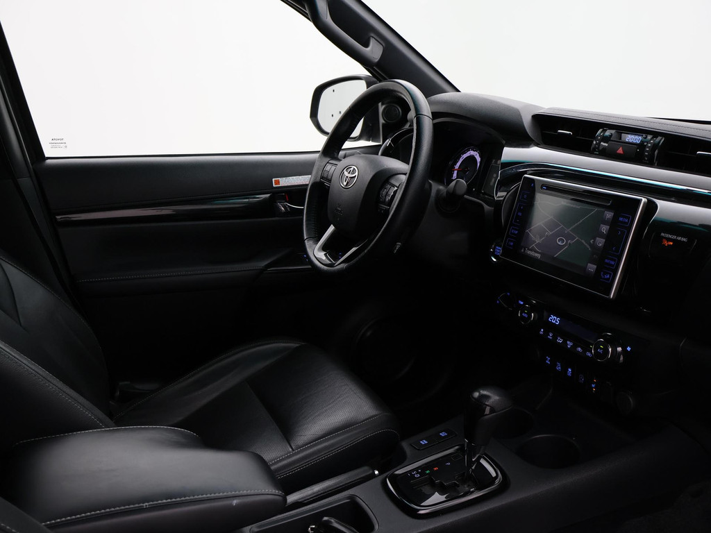 Unieke HiLux: Origineel Nederlandse en 1e eigenaar auto, Volledig Toyota dealer onderhouden, 4x onderhoud gehad, Slechts 42.151 km gereden, Double Cab dus 4 deurs uitvoering, maar gezien de grijs kenteken eisen in Nederland 2 zitplaatsen gemonteerd en op kenteken, tussenschot met ruit achter de 2 stoelen, De achterbank is wel los aanwezig. Donkergrijs metallic met zwart volledig leder interieur, Executive uitvoering, 2.4 D-4D 150 PK Automaat 4X4 met 18 inch lichtmetalen velgen, Elektrische stoelverstelling, Adaptive cruise control, Treeplanken, Full LED koplampen met LED dagrijverlichting, Achteruitrijcamera, Navigatie, Climate control, Bluetooth met audiostreaming, DAB+ digitale radio, Keyless-entry en keyless-drive, Hardcover bed/cover over de laadruimte, Trekhaak met 3050 kg trekgewicht op kenteken, Rollbar achter de achterruit, Privacy glass, Zwarte hemelbekleding, Mistlampen, Zwarte buitenspiegels en portiergrepen, Buitenspiegels elektrisch inklapbaar, Lijnassistentie, Prijs is exclusief BTW.