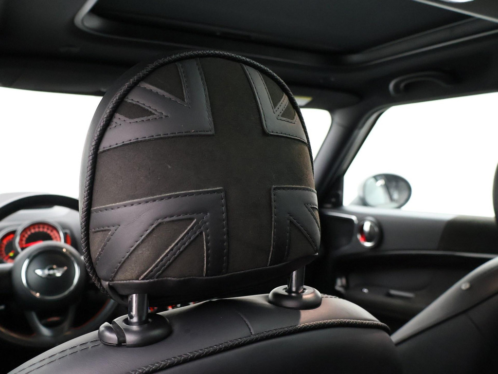 Mini Countryman John Cooper Works (JCW) Chili 2.0 All4 231 PK automaat, RDW nieuwprijs 63.474 euro, Mat groen gewrapt (fabriekskleur onder de wrap = Melting Silver metallic, een taupebeige kleur). Zwart volledig leder sportinterieur met stoelverwarming, Panorama schuif/kanteldak, Uitgebreide sfeerverlichting interieur met verschillende kleuren, Breedbeeld Navigatie, Harman/Kardon premium sound, Achteruitrijcamera, Head-up display, Elektronische voorruitverwarming, DAB+ digitale radio, Bluetooth met audiostreaming, 19 inch lichtmetalen velgen, Zwarte hemelbekleding, Dakrailing, Privacy glass, Full LED Koplampen, LED achterlichten, Grotere brandstoftank, Adaptief onderstel, JCW leder sportstuurwiel, Comfort access keyless-entry en keyless-drive, Isofix, Mini Driving Modes regelbare rij-eigenschappen met sport modus, Cruise control, Climate control, Parkeersensoren, Schakelflippers aan het stuurwiel, Britse vlag in de hoofdsteunen verwerkt, Elektrisch inklapbare buitenspiegels.