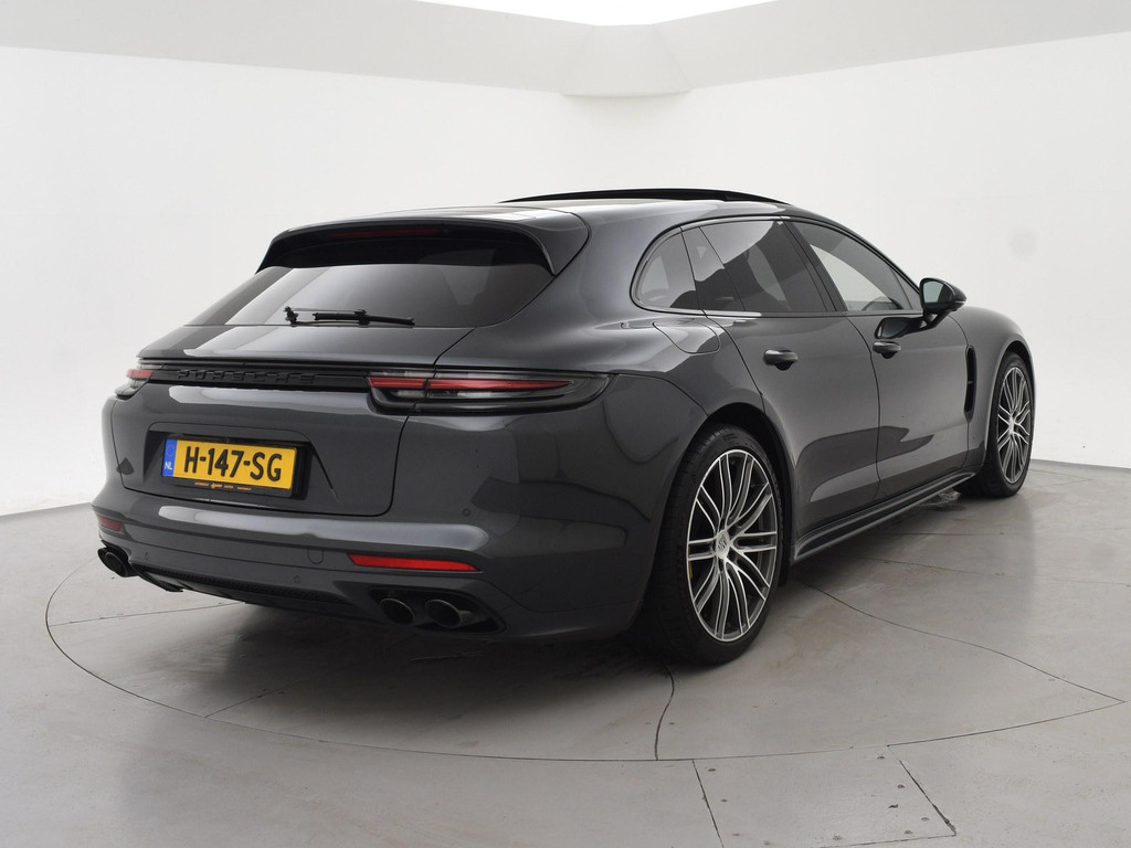 Origineel Nederlandse auto door Porsche Centrum Gelderland geleverd, RDW nieuwprijs 259.939 euro, Sport Turismo, BTW verrekenbaar, Vulkaangrijs metallic, 4.0 V8 Turbo S E-Hybrid 680 PK origineel vanaf fabriek met vierwielaandrijving, Keramische remmen Porsche Ceramic Composite Brake, Zwart volledig leder interieur: sportstoelen met 18-voudige verstelling, Alle dashboard delen van leder niet alleen het dashboard maar zelfs de stoelbehuizing, zijkant van het dashboard en verder alle delen die leder kunnen. 5-persoons uitvoering, Burmester High End audio, Stoelventilatie, Stoelverwarming voor + achter, Sportuitlaat origineel vanaf fabriek met regelbare kleppen, Luchtvering, Adaptief onderstel met regelbare schokdempers, Achterasbesturing, Panorama schuif/kanteldak, 360 graden camerasysteem, 21 inch lichtmetalen velgen, Matrix LED koplampen, 4-zone climate control, Navigatie breedbeeld + Apple Carplay en Android Auto, Head-up display, HomeLink garagedeur opener, DAB+ Digitale radio, Elektrische achterklep, Comfort access keyless, Zwarte alcantara hemelkleding, Extra isolerend dubbel glas, Verkeersbordenherkenning, Lijnassistentie, Adaptive cruise control, Dodehoek assistentie, File assisatent Privacy glass, Sport Chrono pakket, Gele remklauwen, Verlichte speakerkappen, Sluitbekrachtiging Soft Close portieren, Carbon interieur inleg.