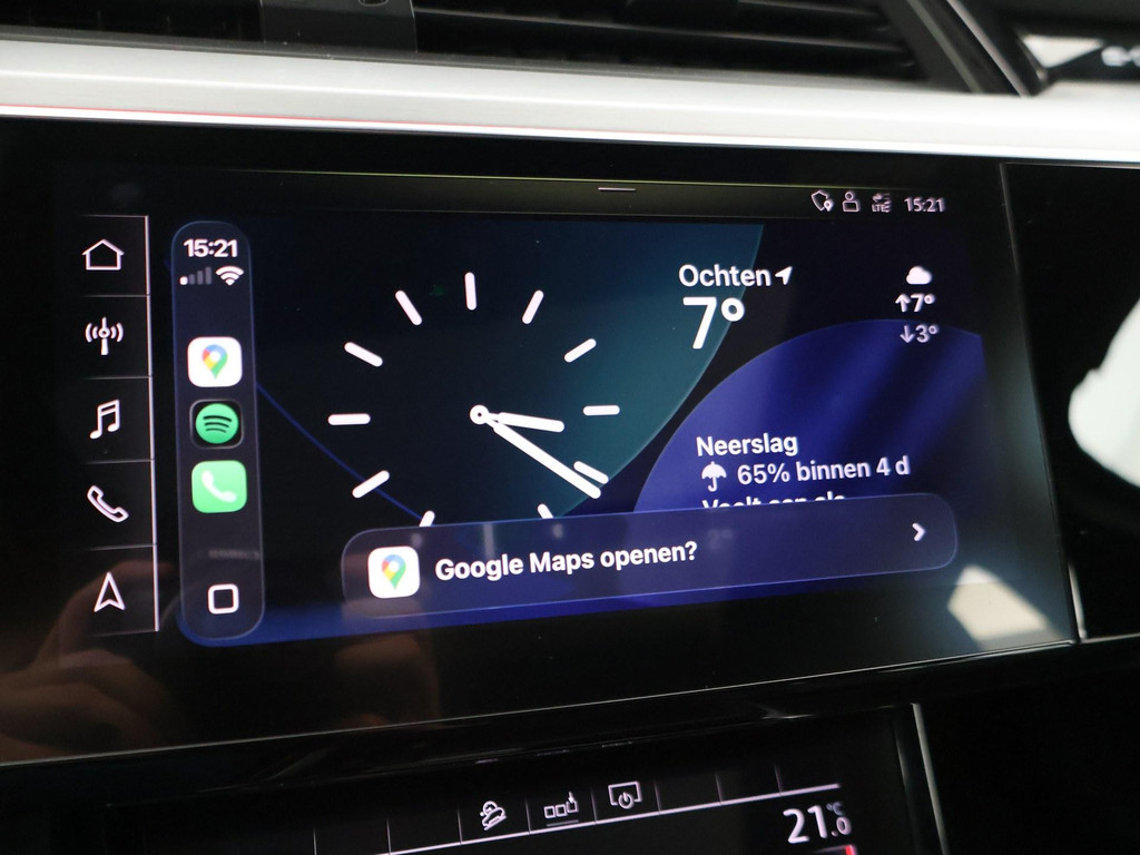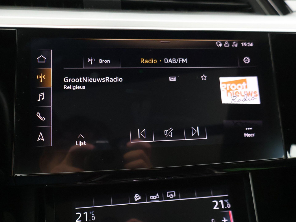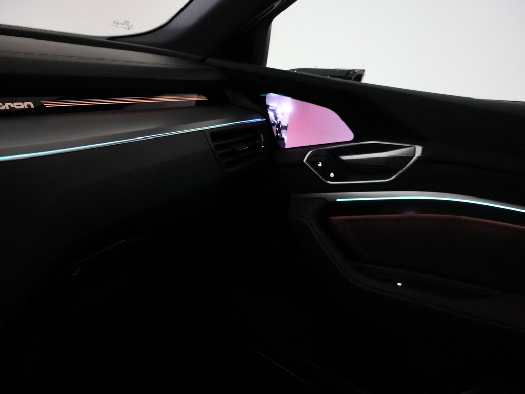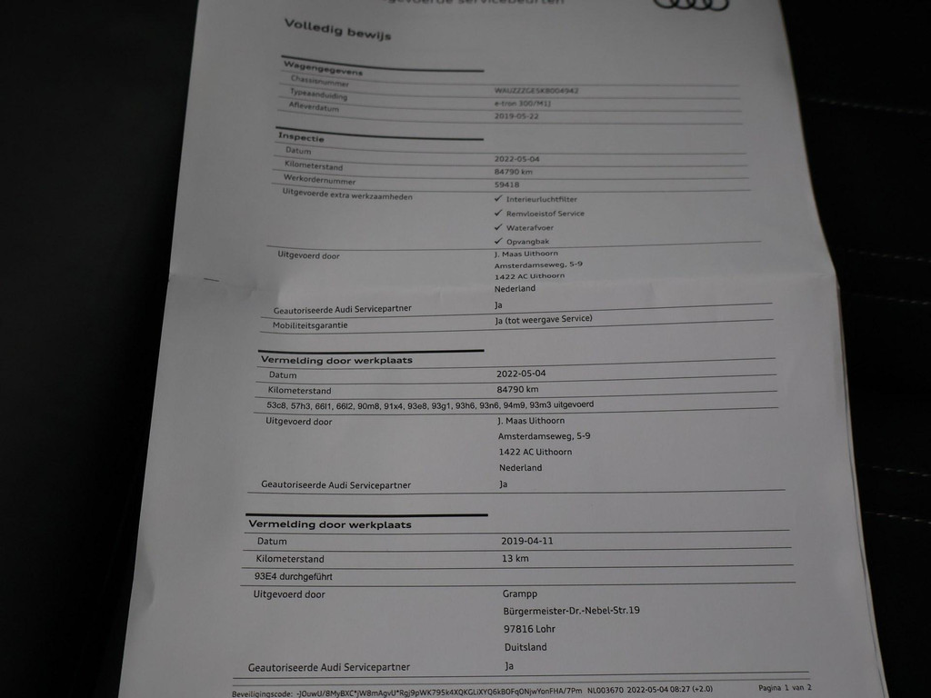 Edition One uitvoering - de introductie uitvoering van de E-Tron met zeer veel extra's en die het meest de introductiekleur Antiguablauw metallic uitgegeven is met oranje remklauwen origineel vanaf fabriek. E-Tron 55 408 PK Quattro, BTW verrekenbaar, prijs is inclusief BTW. Zwart volledig leder sportinterieur met stoelverwarming, 4-Corner Luchtvering met regelbare rijhoogte, Sfeerverlichting interieur met verschillende kleuren, Bang & Olufson premium sound, Panorama schuif/kanteldak, 360 graden surround view camerasysteem, Navigatie, Adaptive cruise control, Cameraspiegels, Parkeersensoren voor en achter, Elektrische stoelverstelling, Zwarte hemelbekleding, Keyless-entry en keyless-drive, Elektrische achterklep, Full LED koplampen, LED achterlichten, Chromen raamlijsten en dakrailing, Apple Carplay / Android Auto, 4-zone climate control, Elektronisch kinderslot. Bijzonderheden: Deze auto kan wel gewoon aan de laadpaal laden, maar niet aan de snelladers zoals Fastned. Dit komt door een isolatiestoring die het snelladen beveiligd. De oplossing hiervoor is ons niet bekend, wij verkopen de auto in de huidige staat.