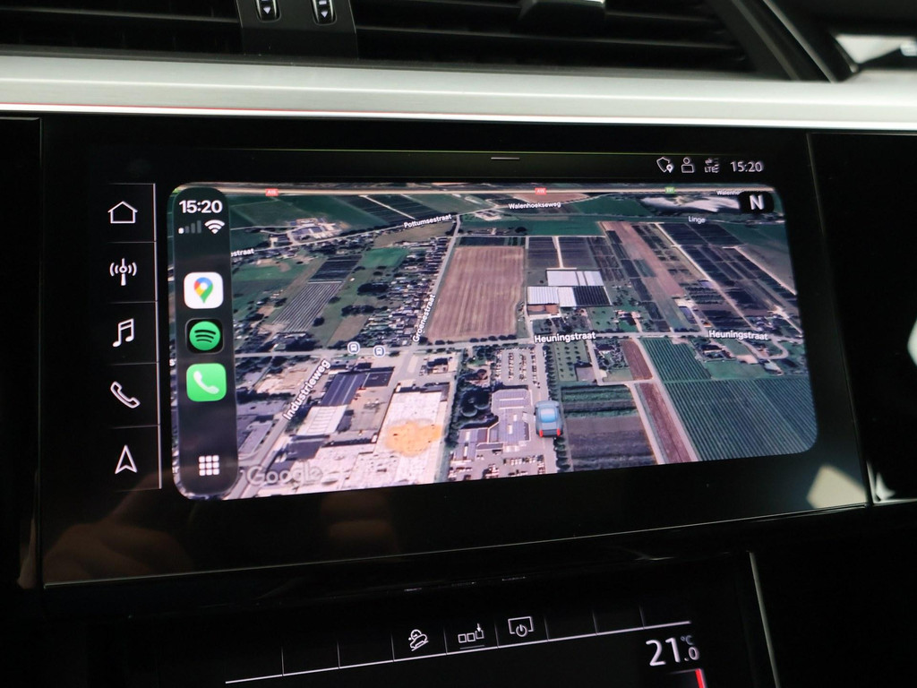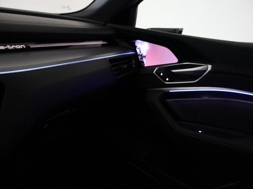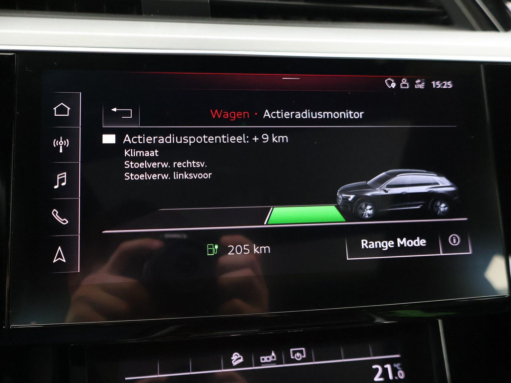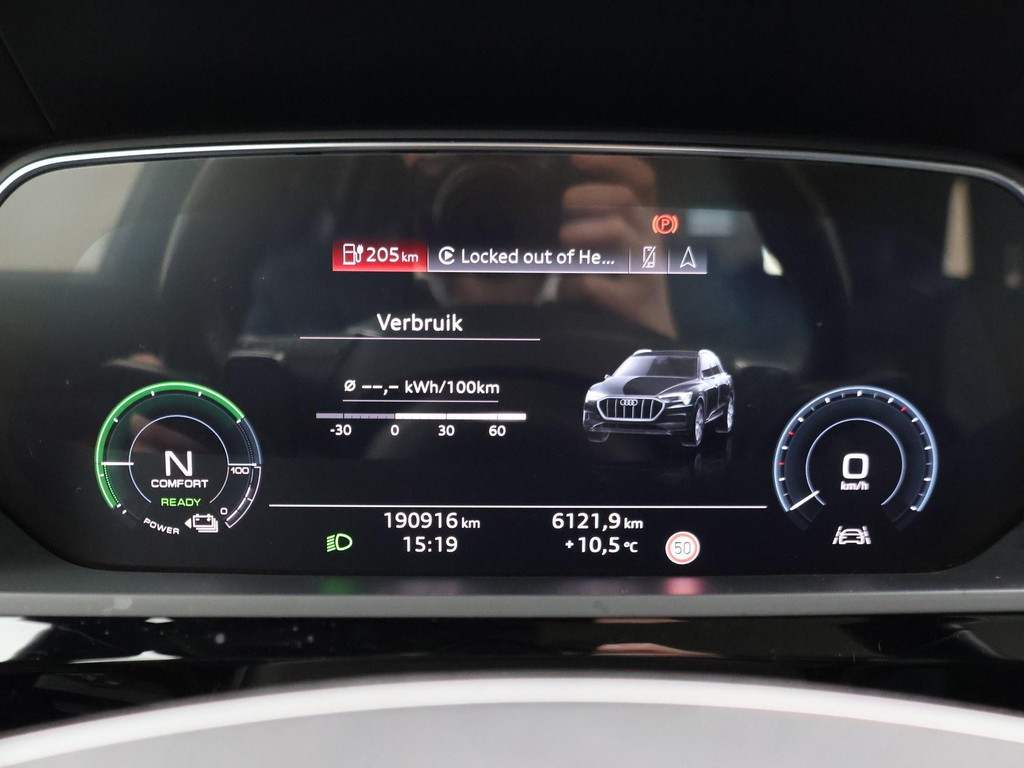 Edition One uitvoering - de introductie uitvoering van de E-Tron met zeer veel extra's en die het meest de introductiekleur Antiguablauw metallic uitgegeven is met oranje remklauwen origineel vanaf fabriek. E-Tron 55 408 PK Quattro, BTW verrekenbaar, prijs is inclusief BTW. Zwart volledig leder sportinterieur met stoelverwarming, 4-Corner Luchtvering met regelbare rijhoogte, Sfeerverlichting interieur met verschillende kleuren, Bang & Olufson premium sound, Panorama schuif/kanteldak, 360 graden surround view camerasysteem, Navigatie, Adaptive cruise control, Cameraspiegels, Parkeersensoren voor en achter, Elektrische stoelverstelling, Zwarte hemelbekleding, Keyless-entry en keyless-drive, Elektrische achterklep, Full LED koplampen, LED achterlichten, Chromen raamlijsten en dakrailing, Apple Carplay / Android Auto, 4-zone climate control, Elektronisch kinderslot. Bijzonderheden: Deze auto kan wel gewoon aan de laadpaal laden, maar niet aan de snelladers zoals Fastned. Dit komt door een isolatiestoring die het snelladen beveiligd. De oplossing hiervoor is ons niet bekend, wij verkopen de auto in de huidige staat.