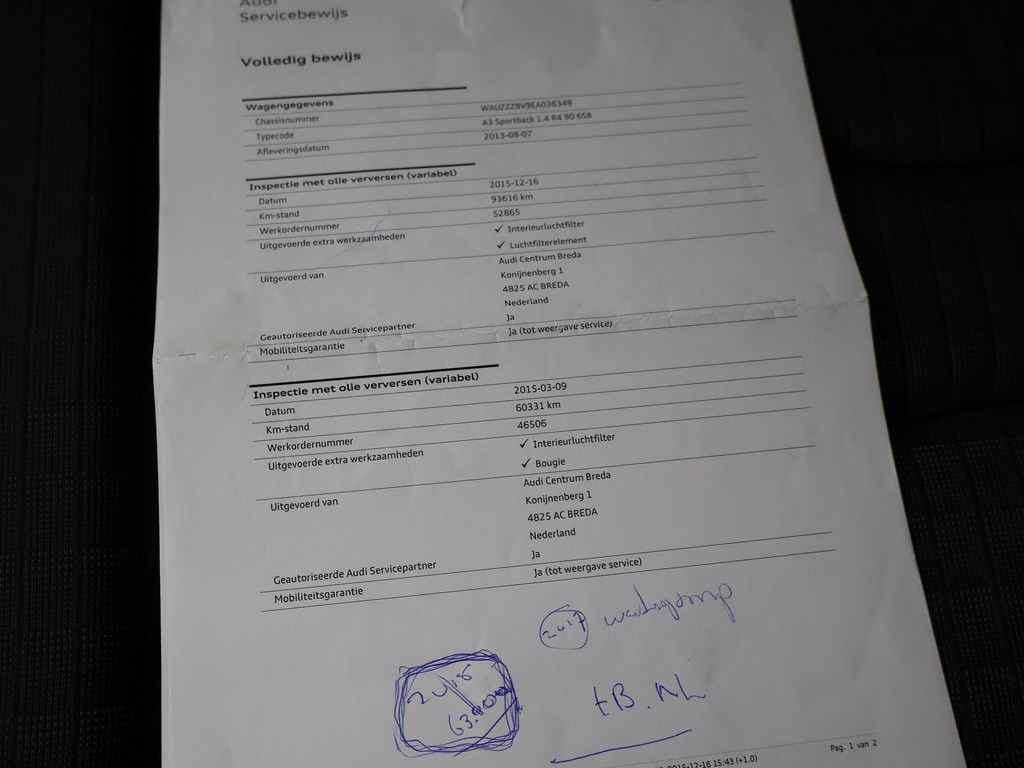 1.4 TFSI 122 PK met 6 versnellingen, Briljantzwart met 18 inch zwarte lichtmetalen velgen, S-Line badges op de voorschermen, maar geen fabrieks S-Line uitvoering, Sportstoelen, Leder stuurwiel, Privacy glass, Navigatie, Airco, Cruise control, Bluetooh met audiostreaming, Parkeersensoren.