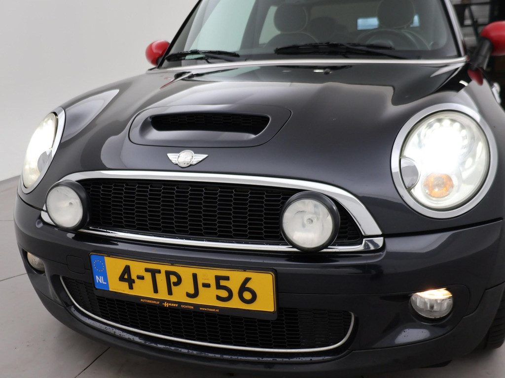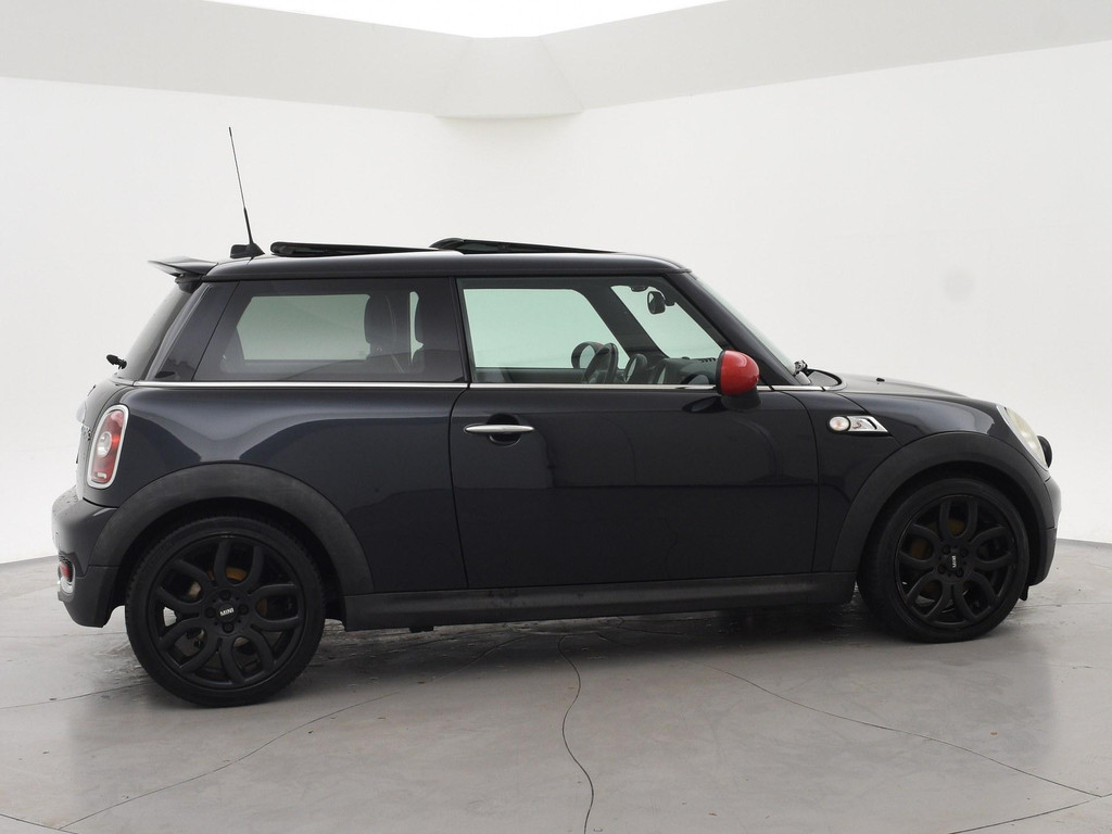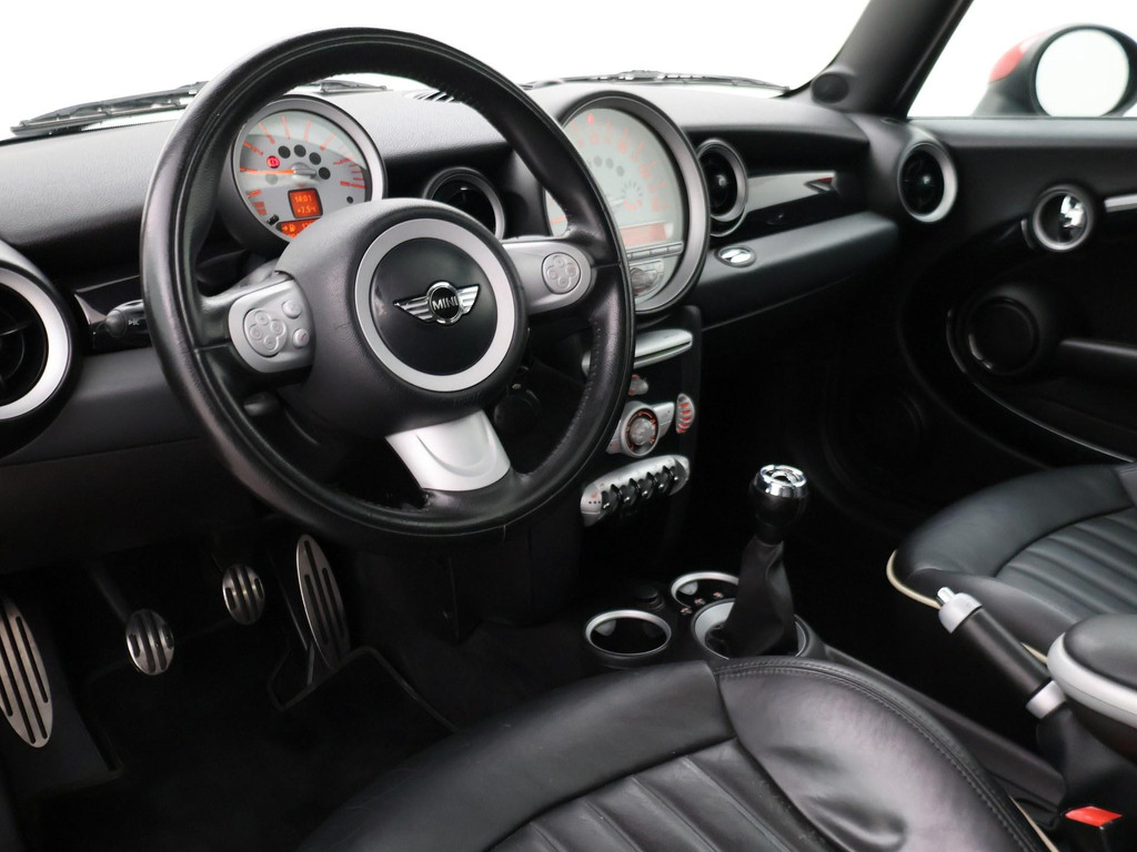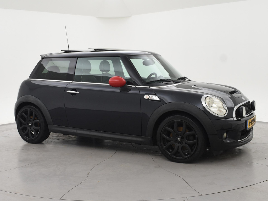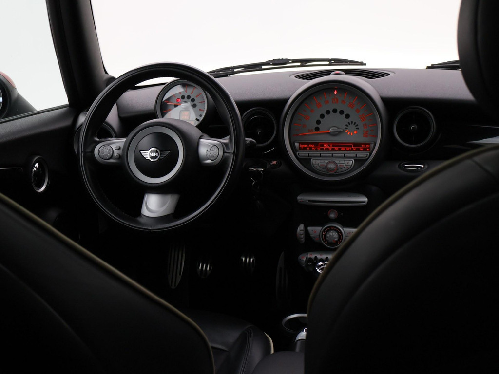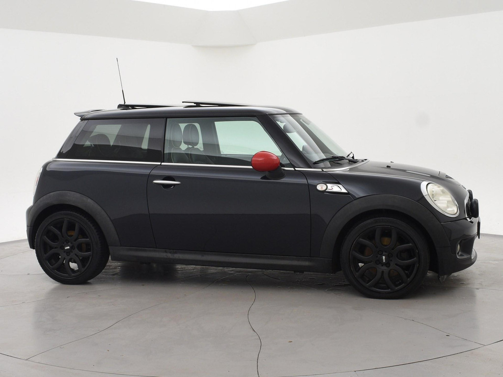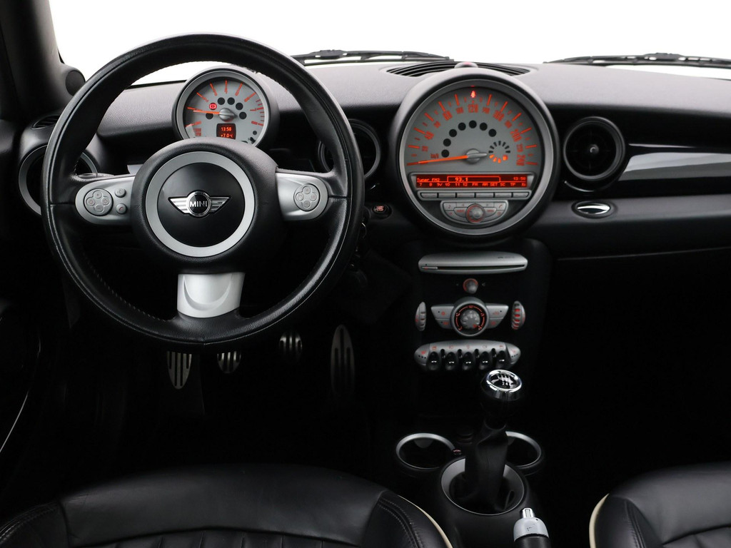 Mini Cooper S 174 PK met 6 versnellingen, Astro Black metallic met zwart leder interieur, Stoelverwarming, Panorama schuif/kanteldak, Xenon verlichting, 17 inch zwarte velgen, Verstralers en mistlampen, Rode buitenspiegels, Airco, Leder stuurwiel, Cruise control.