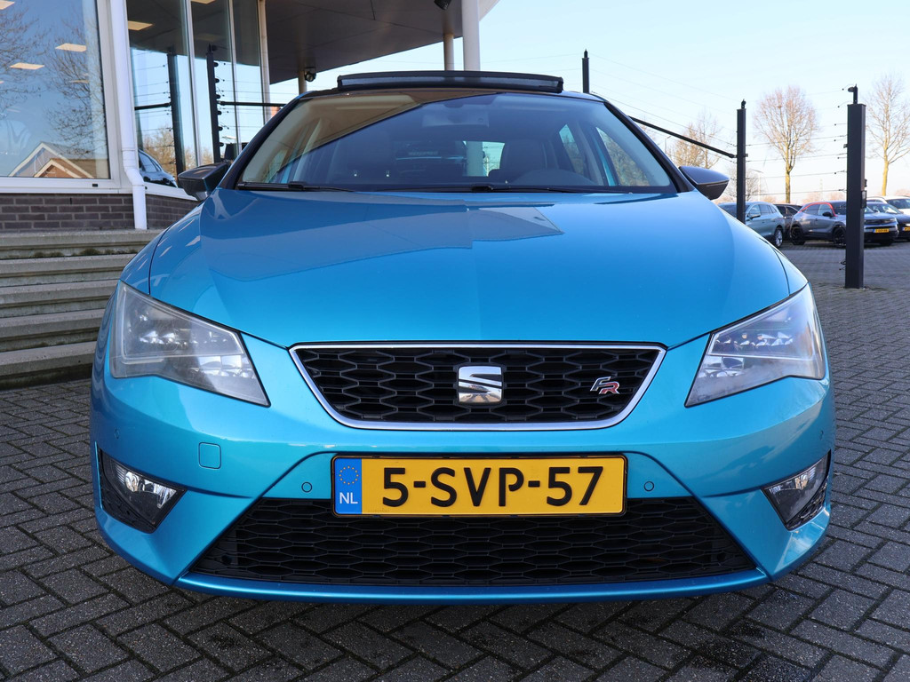 Origineel Nederlandse auto van 30-12-2013, Super leuke, mooie en volle Seat Leon 1.4 TSI FR 140 PK Business uitvoering, Alor Blue metallic exterieur, Volledige onderhoudshistorie aanwezig, 19 Inch lichtmetalen velgen, Elektrisch panorama-dak, Cruise control, Navigatiesysteem met kaartweergave, Bluetooth telefoonverbinding met audiostreaming, Climate control, Parkeersensoren voor + achter met schermweergave, Elektrische ramen voor + achter.