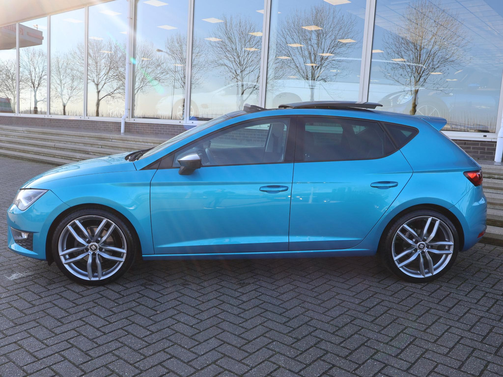 Origineel Nederlandse auto van 30-12-2013, Super leuke, mooie en volle Seat Leon 1.4 TSI FR 140 PK Business uitvoering, Alor Blue metallic exterieur, Volledige onderhoudshistorie aanwezig, 19 Inch lichtmetalen velgen, Elektrisch panorama-dak, Cruise control, Navigatiesysteem met kaartweergave, Bluetooth telefoonverbinding met audiostreaming, Climate control, Parkeersensoren voor + achter met schermweergave, Elektrische ramen voor + achter.