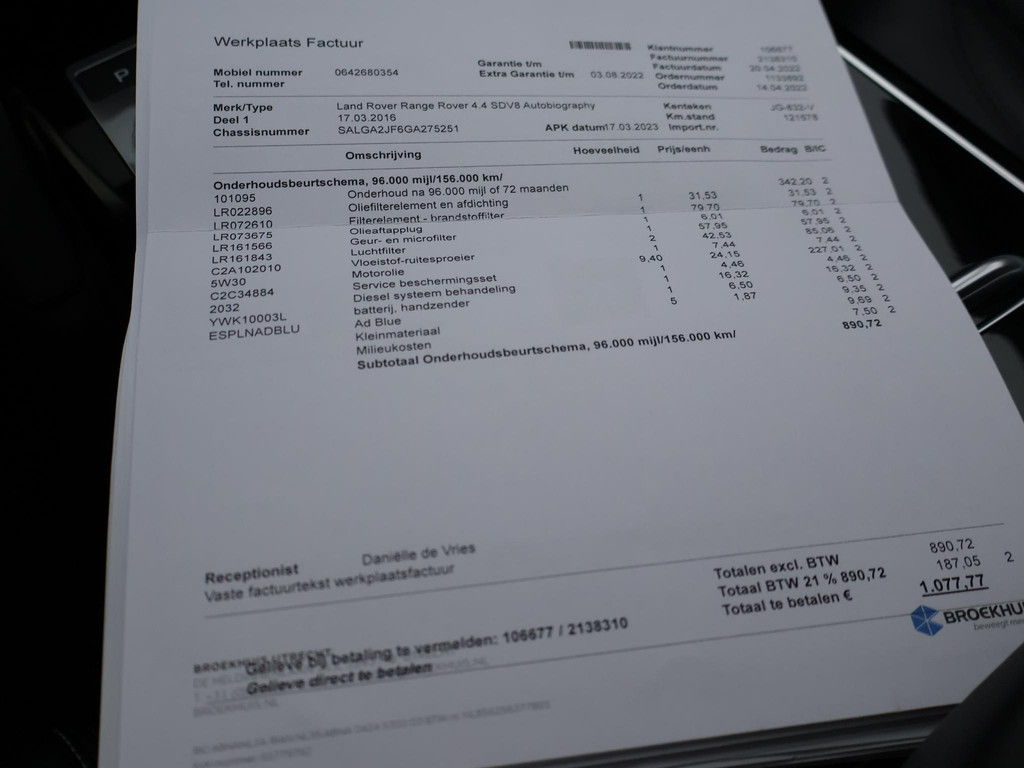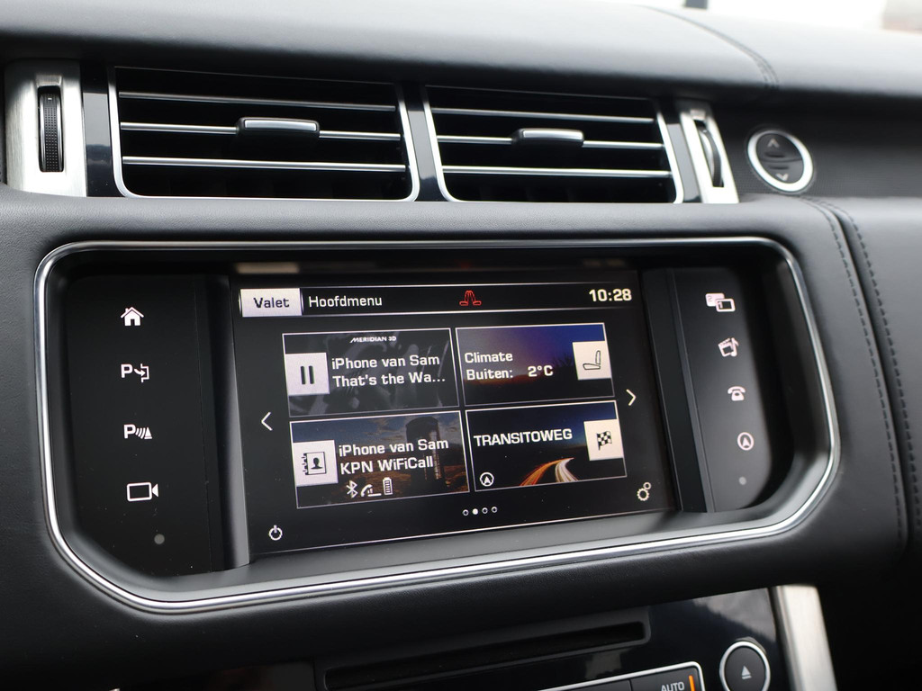 Origineel Nederlandse Range Rover 4.4 SDV8 340 PK Diesel automaat Autobiography uitvoering met een RDW nieuwprijs van 201.697 euro, Bijzonder compleet, Corris Grey metallic met Ebony Semi Aniline geperforeerd leder interieur, Entertainment pakket achterin met 2 schermen origineel vanaf fabriek, Adaptive cruise control, Panorama schuif/kanteldak, Wegklapbare trekhaak met 3500 kg trekgewicht op kenteken, Sfeerverlichting interieur met verschillende kleuren, Meridian Super Premium audio met 2500 watt, Koelkast in de middenarmsteun, Stoelventilatie vooor + achterin, Stoelverwarming voor + achterin, Massagestoelen, Dual screen die vanaf de bestuurder een ander beeld geeft dan vanaf de bijrijder, Stoelverwarming voor + achterin, Privacy glass, Zwart dak origineel vanaf fabriek, 22 inch lichtmetalen velgen origineel vanaf fabriek, Digitale cockpit, Zwarte alcantara hemelbekleding, Achteruitrijcamera, Elektrische achterklep, Voorruitverwarming, Standkachel met afstandsbediening, Elektrisch uitschuifbare treeplanken, Stuurwielverwarming, Elektrische stoelverstelling met geheugen, Elektrische stuurverstelling, Elektrische stuurwielverstelling, Leder dashboard, Dakrailing, Elektrisch inklapbare buitenspiegels. ​