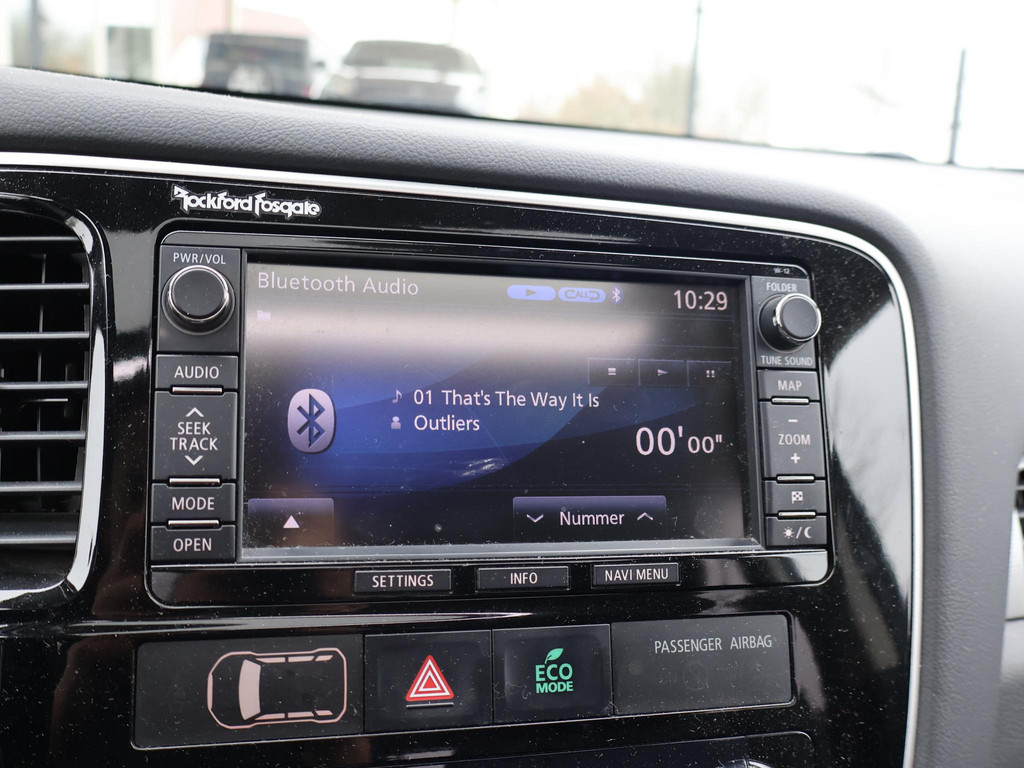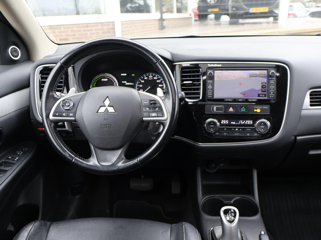 Outlander Plug-in hybride van 07-2014, Instyle+ uitvoering met Zwart volledig leder interieur met stoelverwarming en elektrische stoelverstelling, Adaptive cruise control, Elektrisch schuif/kanteldak, Trekhaak, Privacy glass, Elektrische achterklep, Climate control, Bluetooth telefoonverbinding met audiostreaming.