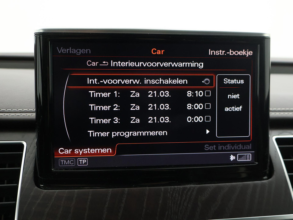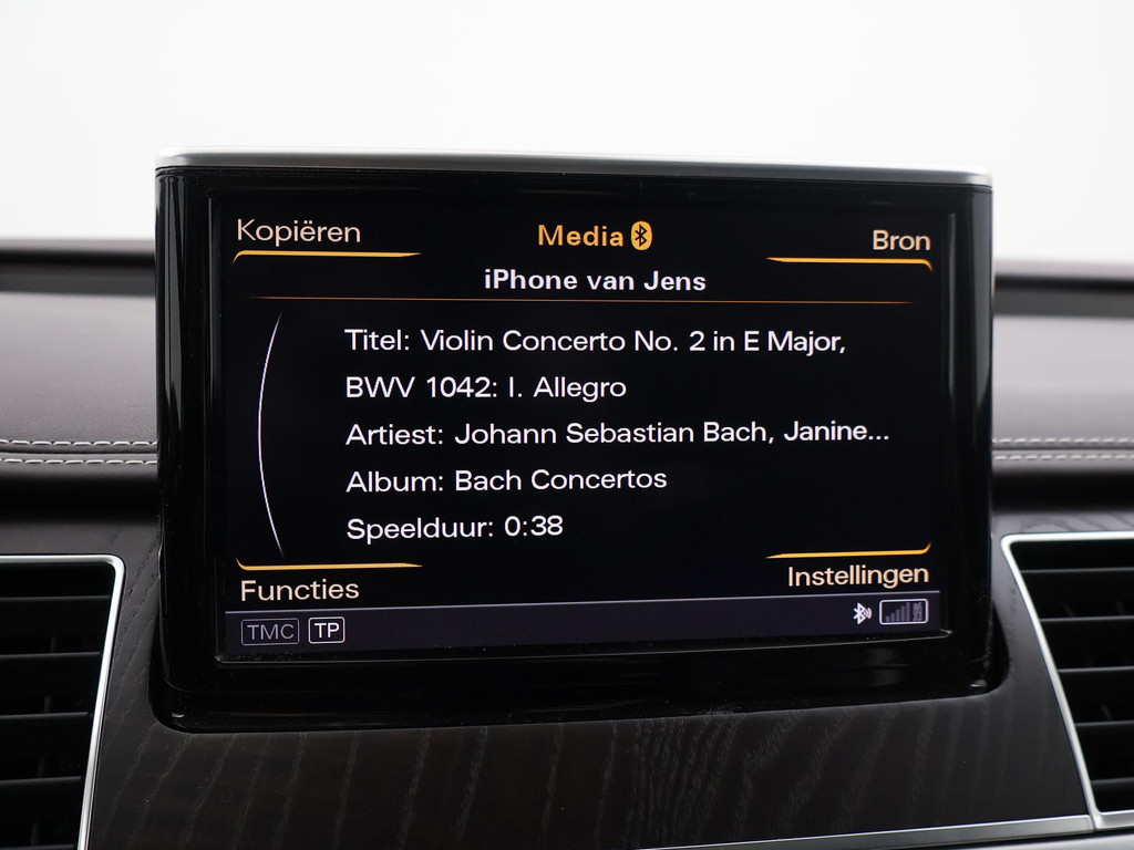 Super zeldzame kleurstelling: Havana black metallic / Havannaschwarz metallic wat zeer donkerbruin metallic is met Audi Design Selection leder exclusief in Balao bruin donkerbruin leder met beige stiksel, Tevens leder dashboard en deurpanelen in donkerbruin met beige stiksel, Donkerbruine vloerbedekking en vloermatten, 3.0 TDI V6 262 PK Quattro Automaat met slechts 129.361 km, Complete uitvoering met Schuif/kanteldak, Elektrisch wegklapbare trekhaak, Head-up display, Rondom zicht camera, Nachtzicht assistent, Massagestoelen, Stoelventilatie, Stoelverwarming, Dubbel glas, 5-persoons uitvoering met neerklapbare armsteun met stoelverwarming en climate control bediening voor achterin, Adaptive cruise control, Elektrische achterklep, LED sfeerverlichting interieur, Luchtvering.