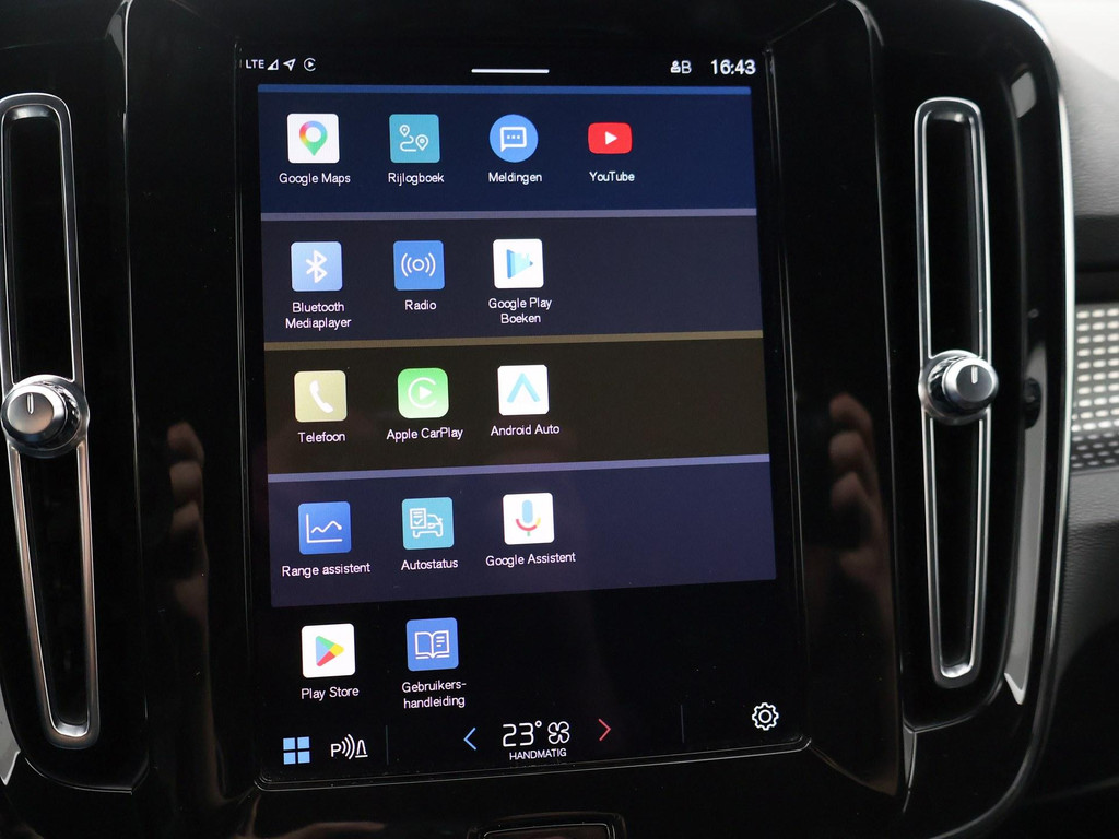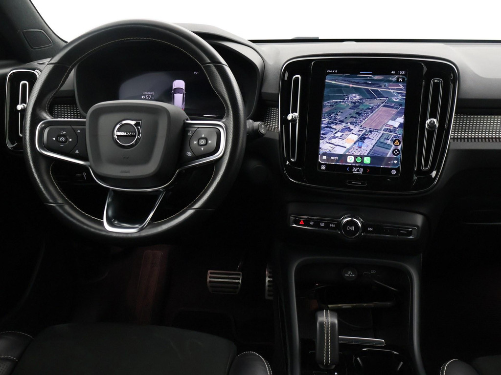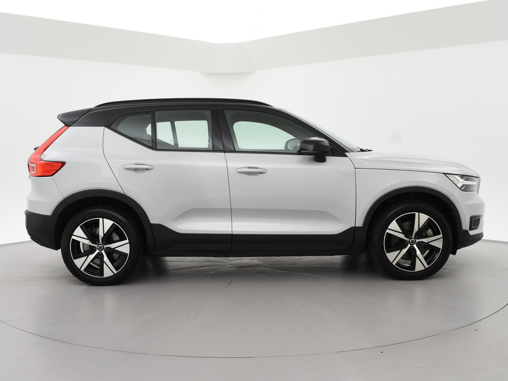 XC40 Recharge P8 408 PK AWD vierwielaandrijving in de exterieurkleur Magnesium met zwart dak en zwarte buitenspiegels, R-Design uitvoering, 19 inch lichtmetalen velgen, Adaptive cruise control, Apple Carplay / Android Auto, Digitale cockpit, Leder alcantara sportinterieur, Elektrische achterklep, Keyless-entry en keyless-drive, Climate control, Full LED koplampen, LED achterlichten, DAB+ digitale radio, Bluetooth.