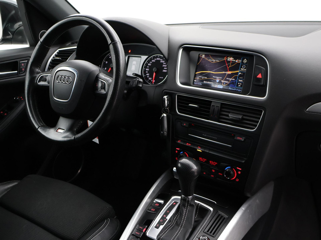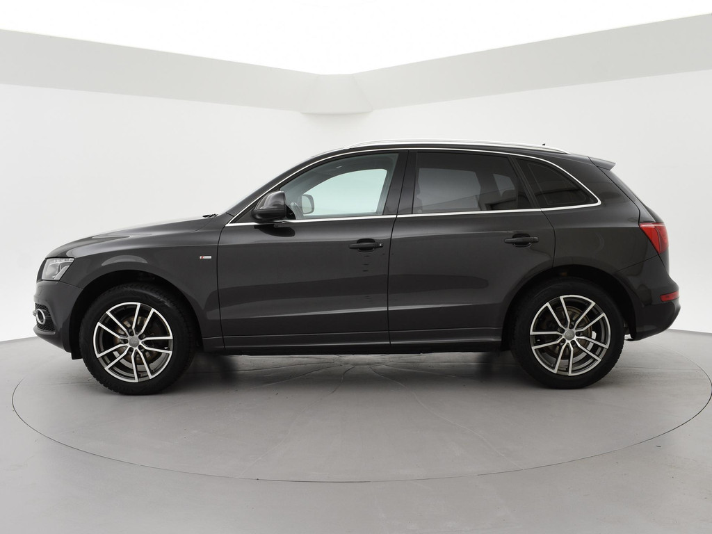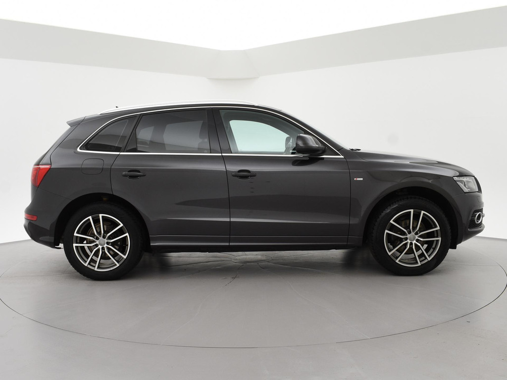 Origineel Nederlandse Q5 2.0 TFSI 211 PK Quattro automaat in het Lavagrijs pareleffect, S-Line interieur en exterieur pakket, Bang & Olufsen premium sound, 19 inch lichtmetalen velgen, Trekhaak, Sportstoelen half leder, Navigatie, Trekhaak met 2000 kg trekgewicht op kenteken, Cruise control, Zonneschermen achterin, Climate control.