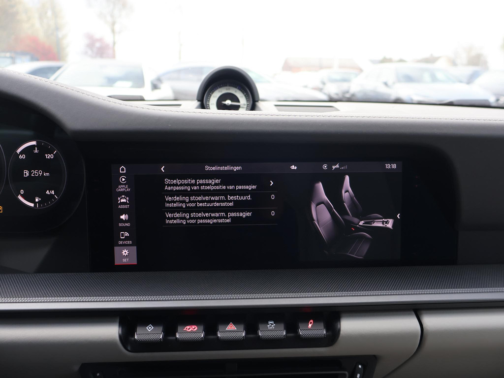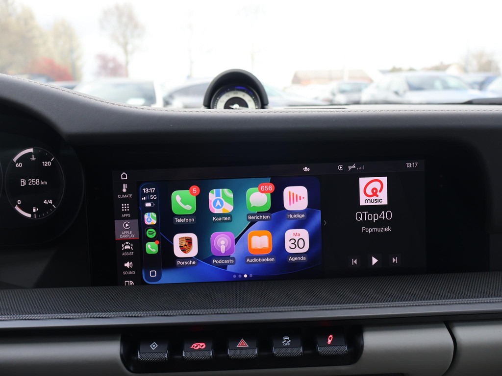 Origineel Nederlandse 992 911 Targa 3.0 4S 450 PK PDK automaat in het Carrarawit metallic met Leisteen Grijs met Krijt leder interieur, Vierwielaandrijving, Slechts 17.981 km gereden, Sportuitlaat origineel vanaf fabriek, 360 graden camerasysteem, SportDesign bumpers met afwerking in hoogglans zwart, Bose premium sound, Sport Chronopakket, Lederen interieurdelen, Sfeerverlichting interieur, 20 inch lichtmetalen velgen breedset (305 achter, 245 voor), Verwarmd stuurwiel, Rode remklauwen, Donker glas achter, Full LED koplampen, Draadloze Apple Carplay / Android Auto appstreaming Google Maps, Flitsmeister, Whatsapp etc, DAB+ Digitale radio, PASM adaptief onderstel, Cruise control, Deels digitale cockpit met navigatie kaartweergave, Navigatie breedbeeld touch-screen, Stoelverwarming, Elektrische stoelverstelling met geheugen, Parkeersensoren, Climate control, Elektrische spoiler, Porsche projectie op de straat, Zwart/grijs logo voor.