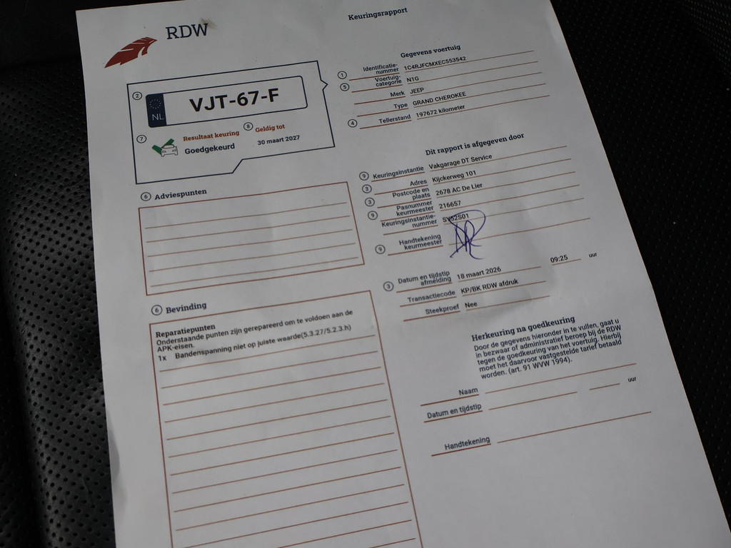 Jeep Grand Cherokee 5.7 V8 352 PK Overland automaat, Benzine grijs kenteken uitvoering met 2 zitplaatsen, Trekhaak met 3325 KG trekgewicht, Elektrisch schuif/kanteldak, Volledig leder interieur met stoelverwarming en stoelventilatie, Stuurwielverwarming, Elektrische stoelverstelling met geheugenstanden, Climate control, Adaptieve cruise control, Elektrisch inklapbare buitenspiegels, Navigatiesysteem met kaartweergave, DAB Digitale radio, Achteruitrijcamera, Parkeersensoren achter, Keyless go, Prijs is exclusief BTW.