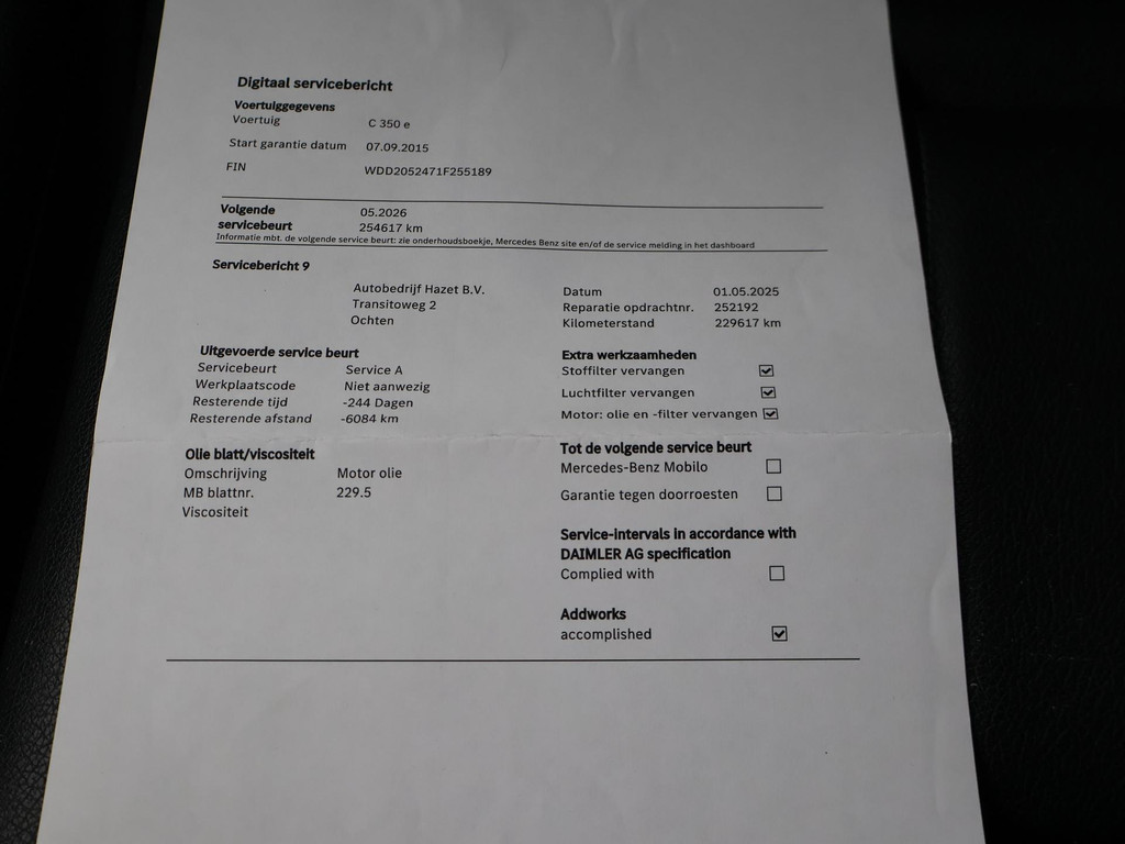 C350e Plug-in hybrid benzine/elektro 280 PK Automaat, Zwart met zwart volledig leder interieur, Burmester Premium sound, 4 uitlaten, Sfeerverlichting met verschillende kleuren, Full LED koplampen, LED achterlichten, Surround View 360 graden camerasysteem, AMG grille, Elektrische achterklep, Privacy glass, Cruise control, Navigatie Comand groot scherm, Bluetooth met audiostreaming, Parkeersensoren voor + achter, Zwarte hemelbekleding, Keyless-Go, Mat afgewerkt zwart houtinleg, Elektrisch inklapbare buitenspiegels, Luchtvering, Bluetooth telefoon met audiostreaming, Agility Select met regelbare rijmodus, Sfeerverlichting interieur met verschillende kleuren, Climate control, Radio/CD met stuurwielbediening.