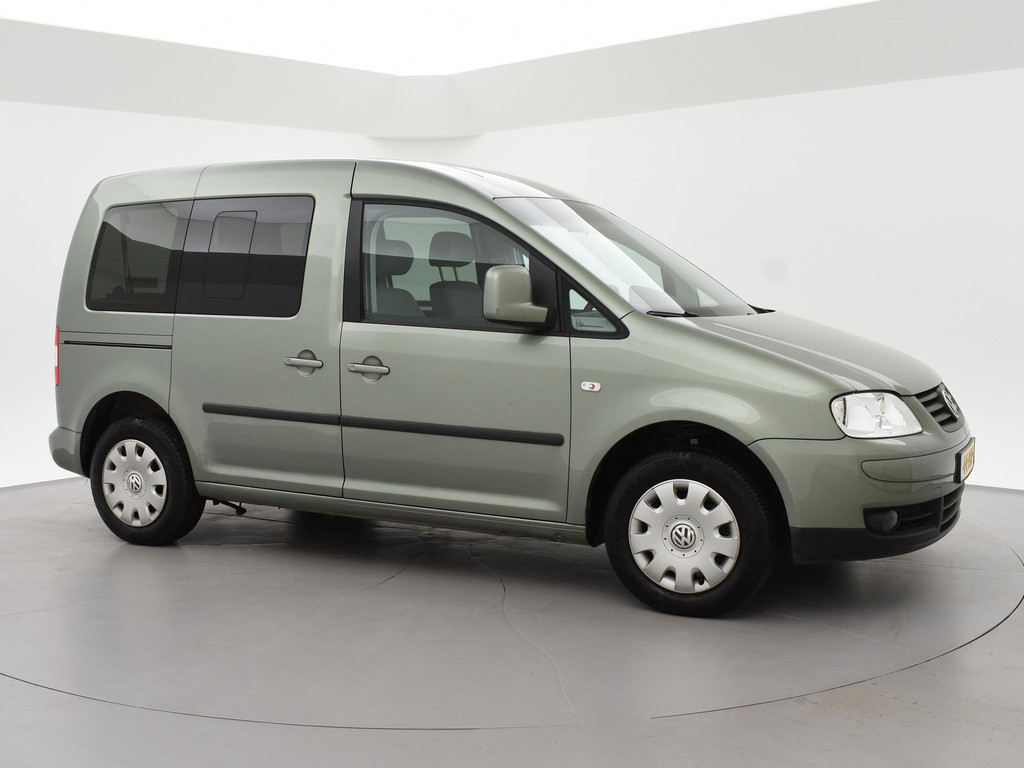 Caddy 5-persoons geel kenteken 1.6 benzine 102 PK handgeschakeld in het Fresco Groen metallic, 5 zitplaatsen + rolstoelplaats met goedgekeurde rolstoel ombouw op kenteken, Airco, Privacy glass extra getint glas achter, Mistlampen, Radio/CD Volkswagen, Bumpers en buitenspiegels in carrosseriekleur, Onderhoudsboekje afgestempeld aanwezig, ​Origineel Nederlandse auto met slechts 128.767 km.