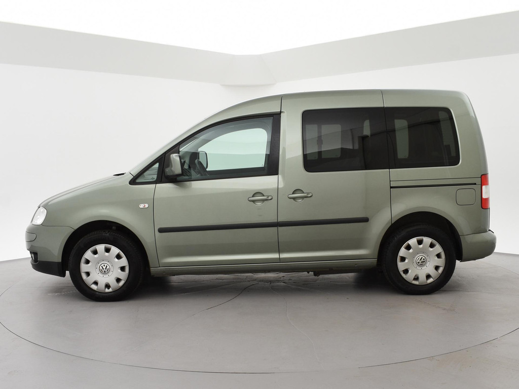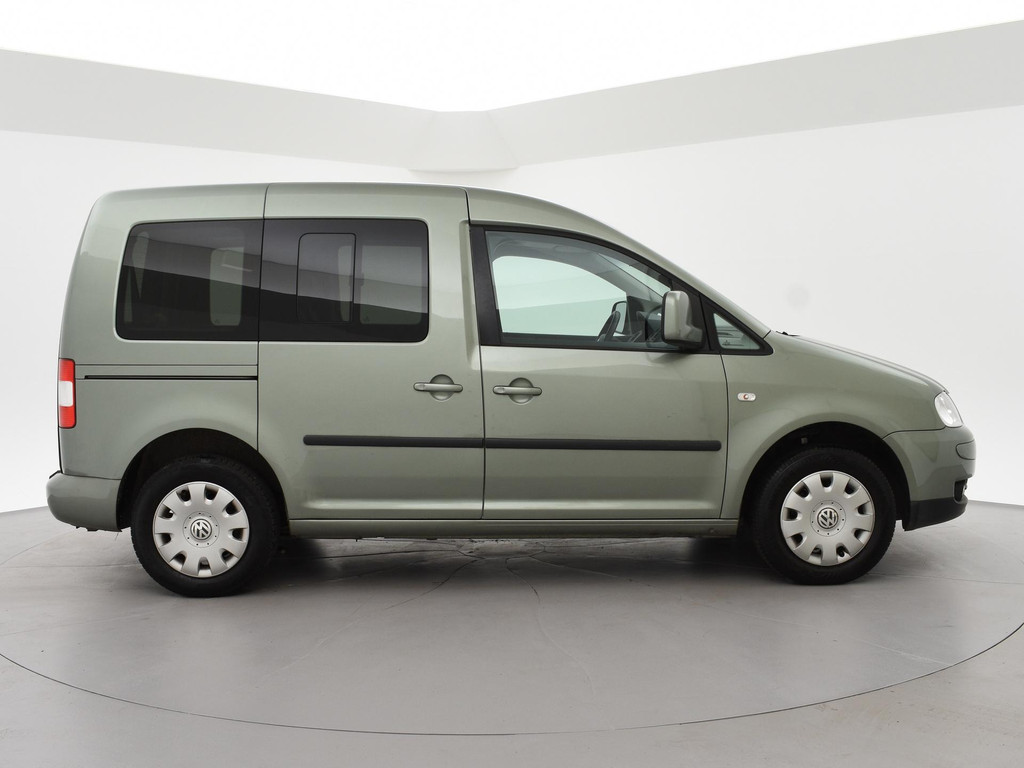 Caddy 5-persoons geel kenteken 1.6 benzine 102 PK handgeschakeld in het Fresco Groen metallic, 5 zitplaatsen + rolstoelplaats met goedgekeurde rolstoel ombouw op kenteken, Airco, Privacy glass extra getint glas achter, Mistlampen, Radio/CD Volkswagen, Bumpers en buitenspiegels in carrosseriekleur, Onderhoudsboekje afgestempeld aanwezig, Origineel Nederlandse auto met slechts 128.767 km.