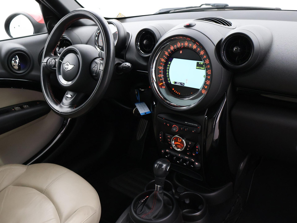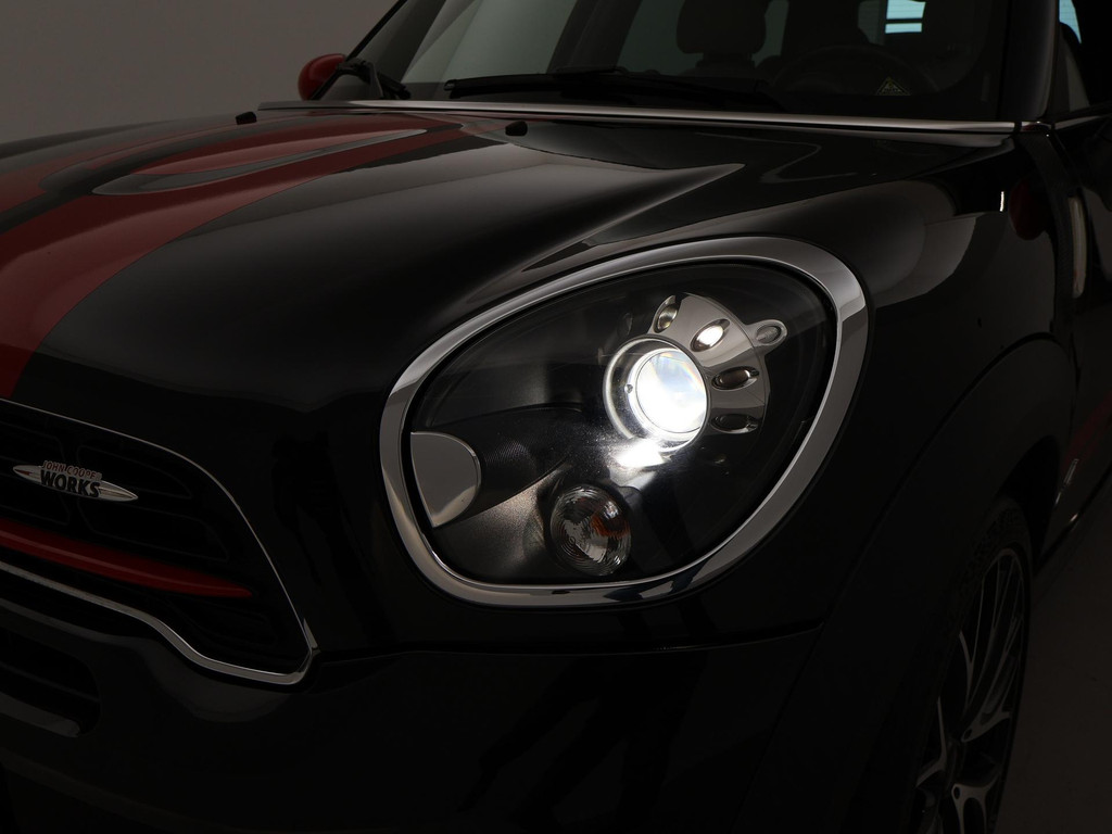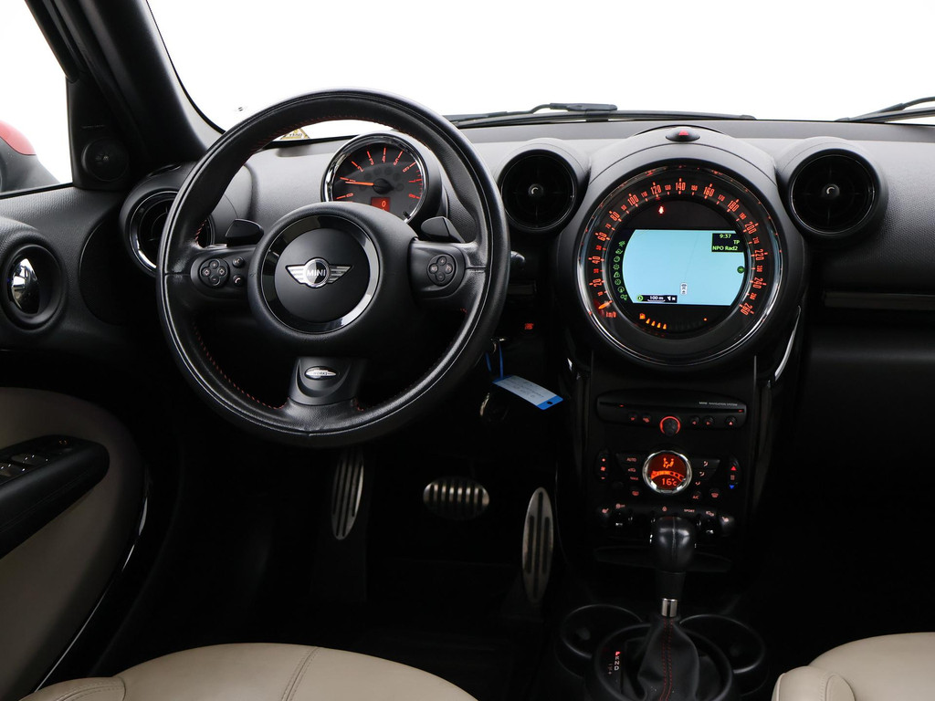 Mini Countryman 1.6 John Cooper Works ALL4 Vierwielaandrijving, 218 PK Chili automaat, Zeer complete uitvoering met veel leuke opties en in nette staat, Elektrisch panorama-dak, Harman Kardon premium sound, Volledig leder interieur met stoelverwarming, Sfeerverlichting met verschillende kleuren, Navigatiesysteem met kaartweergave, Dubbele sportuitlaat, Cruise control, Climate control, Bluetooth telefoonverbinding met audiostreaming, Xenon verlichting, Carbon delen exterieur.