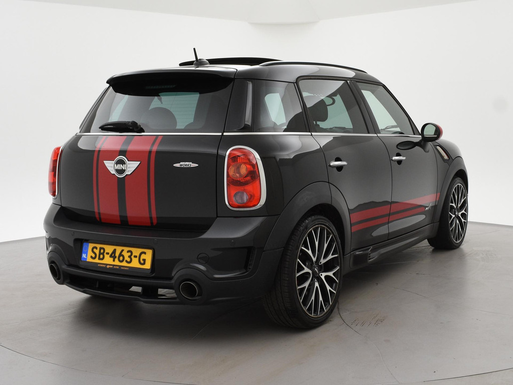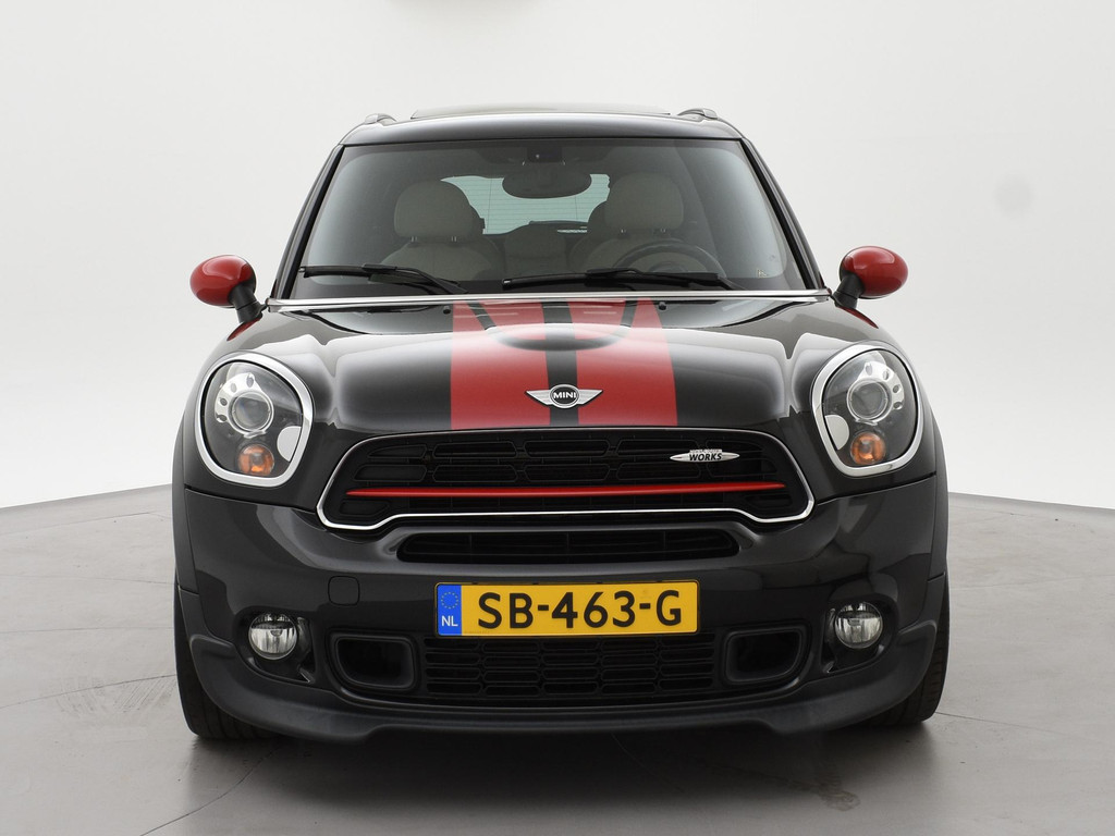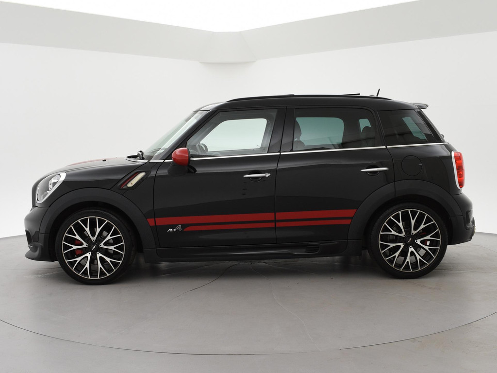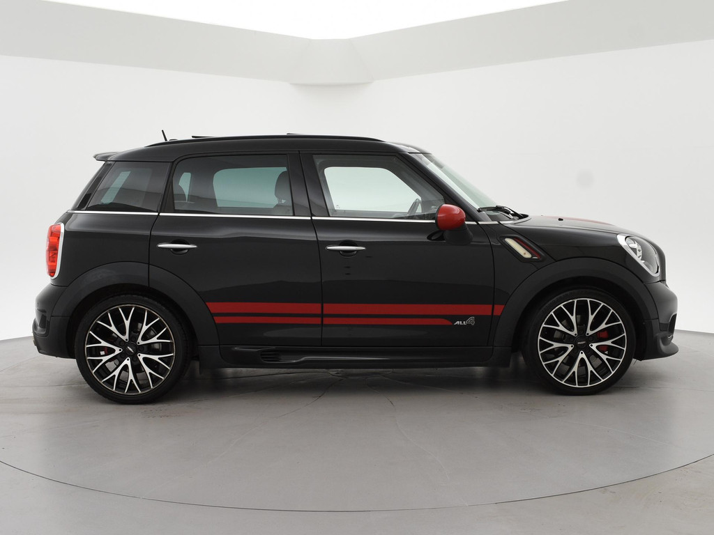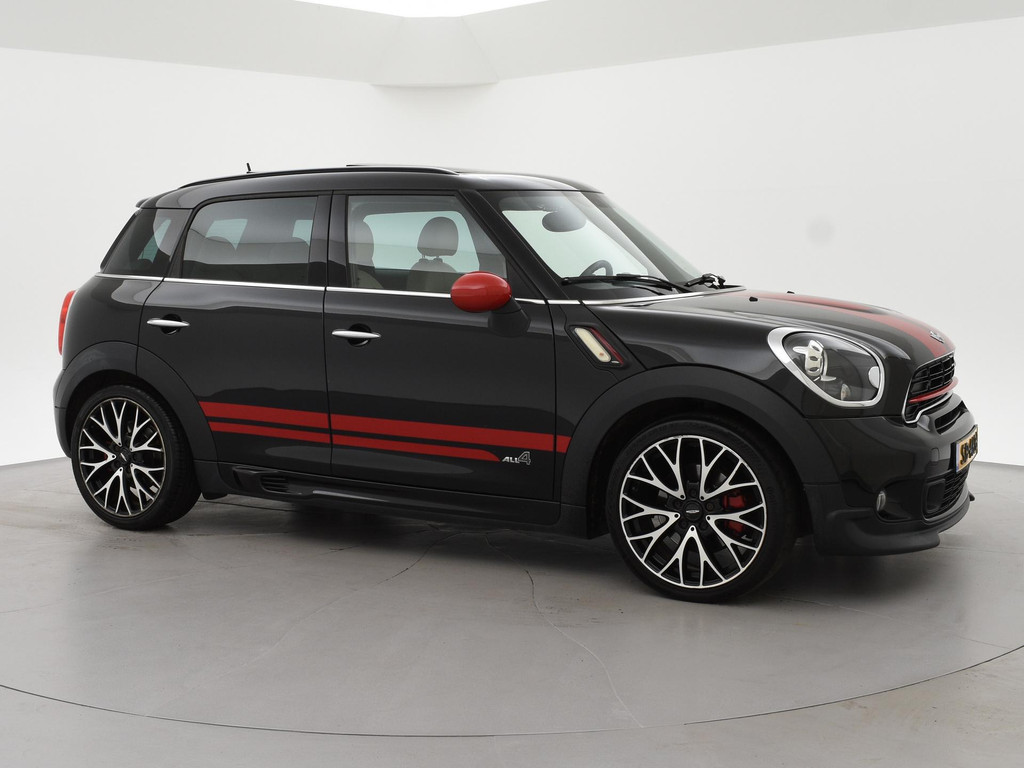Mini Countryman 1.6 John Cooper Works ALL4 Vierwielaandrijving, 218 PK Chili automaat, Zeer complete uitvoering met veel leuke opties en in nette staat, Elektrisch panorama-dak, Harman Kardon premium sound, Volledig leder interieur met stoelverwarming, Sfeerverlichting met verschillende kleuren, Navigatiesysteem met kaartweergave, Dubbele sportuitlaat, Cruise control, Climate control, Bluetooth telefoonverbinding met audiostreaming, Xenon verlichting, Carbon delen exterieur.