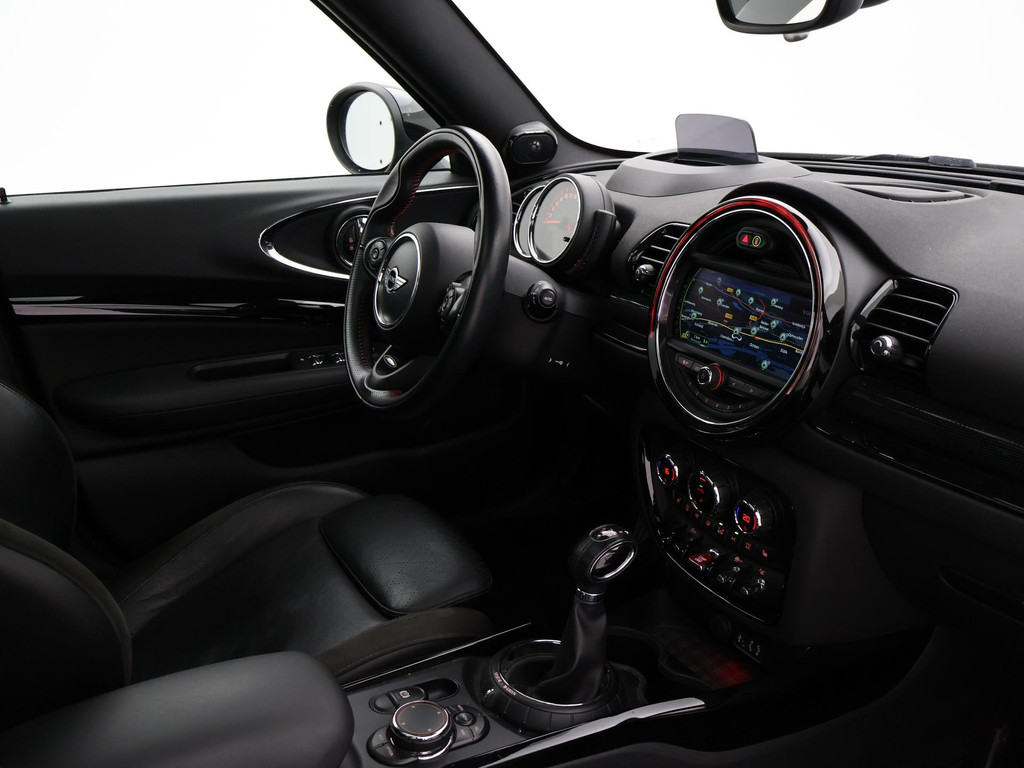 Origineel Nederlandse Clubman Cooper S 2.0 4-cilinder 192 PK Automaat in het Midnight Black metallic met mat zwart dak, Panorama schuif/kanteldak, Sportstoelen leder, Stoelverwarming, Elektrische stoelverstelling links en rechts, Geheugenfunctie op de bestuurdersstoel, Head-up display, Elektronisch verwarmde voorruit, Privacy glass, 19 inch lichtmetalen velgen, Full LED koplampen, LED dagrijverlichting, LED achterlichten, Bluetooth met audiostreaming, Achteruitrijcamera, Harman/Kardon premium sound, Climate control, LED Mistlampen, Navigatie Professional breedbeeld, Zwarte hemelbekleding, Onderhoudshistorie compleet digitaal bijgehouden, Sfeerverlichting interieur met verschillende kleuren.