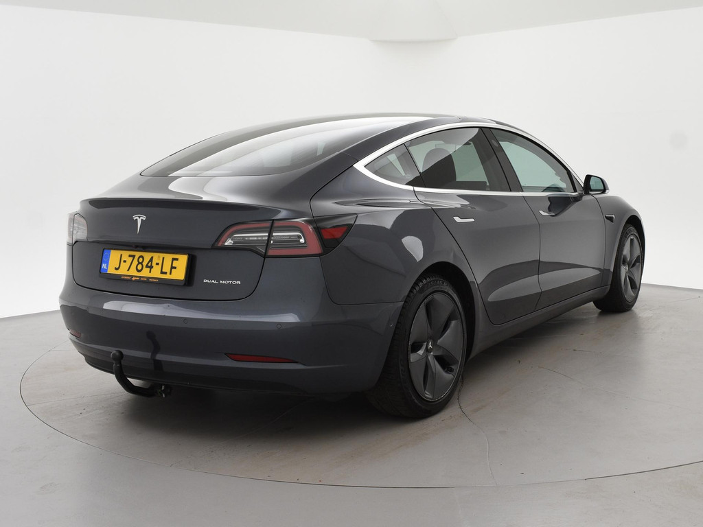 Origineel Nederlandse auto van 09-2020, Long Range AWD uitvoering met 560 km WLTP actieradius, Trekhaak met 1000 kg trekgewicht op kenteken geregistreerd (meeste Tesla 3's hebben geen trekgewicht), BTW verrekenbaar, Zwart leder interieur met stoelverwarming, Panoramadak, Zijcamera's en achteruitrijcamera, Navigatie, LED, 18 inch, Adaptive cruise control, Stuurwielverwarming.