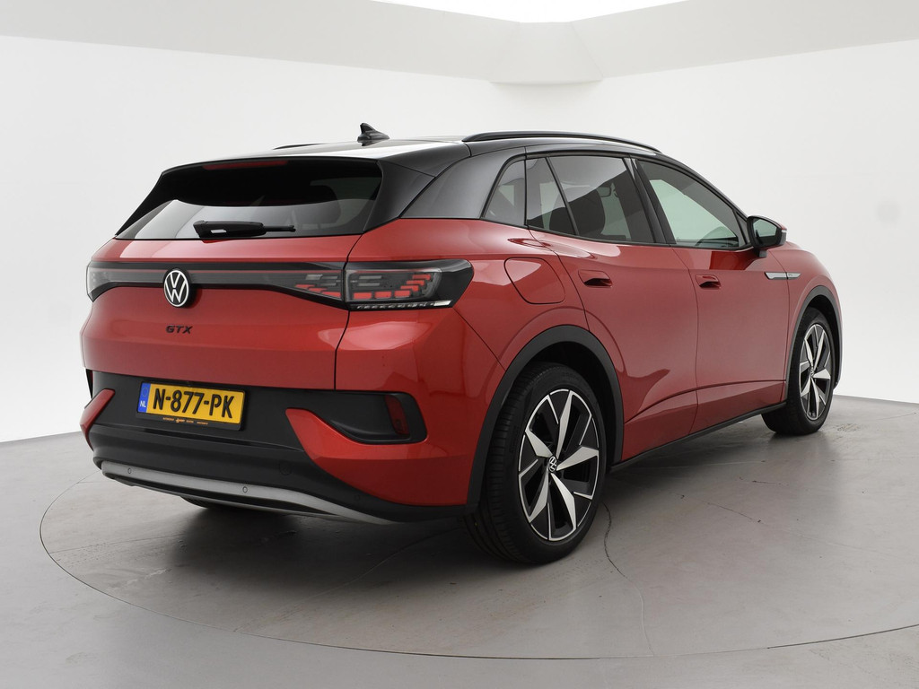 Origineel Nederlandse auto van 12-2021, ID.4 GTX 300 PK 4Motion vierwielaandrijving in het Kings Red metallic met zwart dak en 20 inch lichtmetalen velgen, Privacy glass, Super uitstraling auto, SOH waarde 90%, Zwart deels leder GTX interieur met rode accenten, Wegklapbare trekhaak met 1200 kg trekgewicht op kenteken, Sfeerverlichting interieur met verschillende kleuren, Panoramadak, Adaptive cruise control, Achteruitrijcamera, Stuurwielverwarming, Stoelverwarming, Apple Carplay / Android Auto, Climate control, DAB+ digitale radio, Armleuningen, Buitenspiegels elektrisch inklapbaar, Rood stiksel in het dashboard en deurpanelen, BTW verrekenbaar.