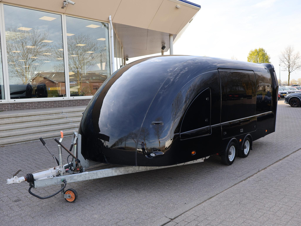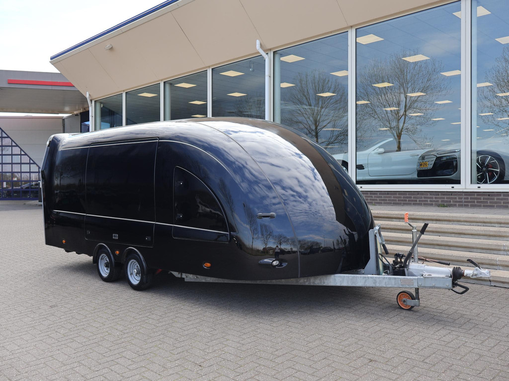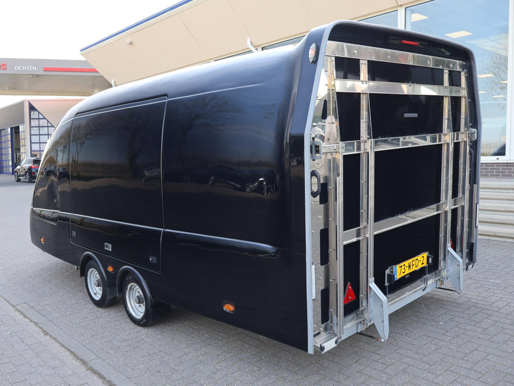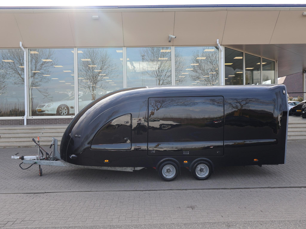 Woodford gesloten shuttle uit de RL5000 serie en dan de grootste uitvoering daarvan de RL5042, bij RDW genaamd RL5-042. Autotransporter voor gesloten transport. Gesloten trailer, Race shuttle, Raceauto shuttle. Hydrolische kanteling voor extra lage auto's, 485 cm laadlengte tot aan het schot, Warrior Winch Ninja elektrische lier op 12V accu met afstandsbediening, model 45SPS12 met staalkabel die 2041 kg mag trekken. Origineel Nederlandse shuttle van 02-05-2022, Lengte op kenteken 700 cm, breedte 253 cm, wielbasis 467 cm, Maximumconstructiesnelheid 140 km/h, Tandemasser middenasaanhanger met 2 assen, Laadvermogen op kenteken: 2320 kg, Hoogglans zwarte exterieurkleur,  Breedte binnenzijde 211 cm, hoogte binnenzijde 195 cm. Maximum eigen gewicht 3500 kg, 1180 kg ledig gewicht, Reservewiel, 2 grote zijvleugeldeuren en 2 servicedeuren voor gemakkelijke toegang, Prijs is exclusief BTW.