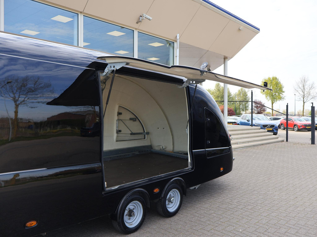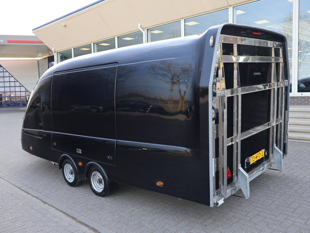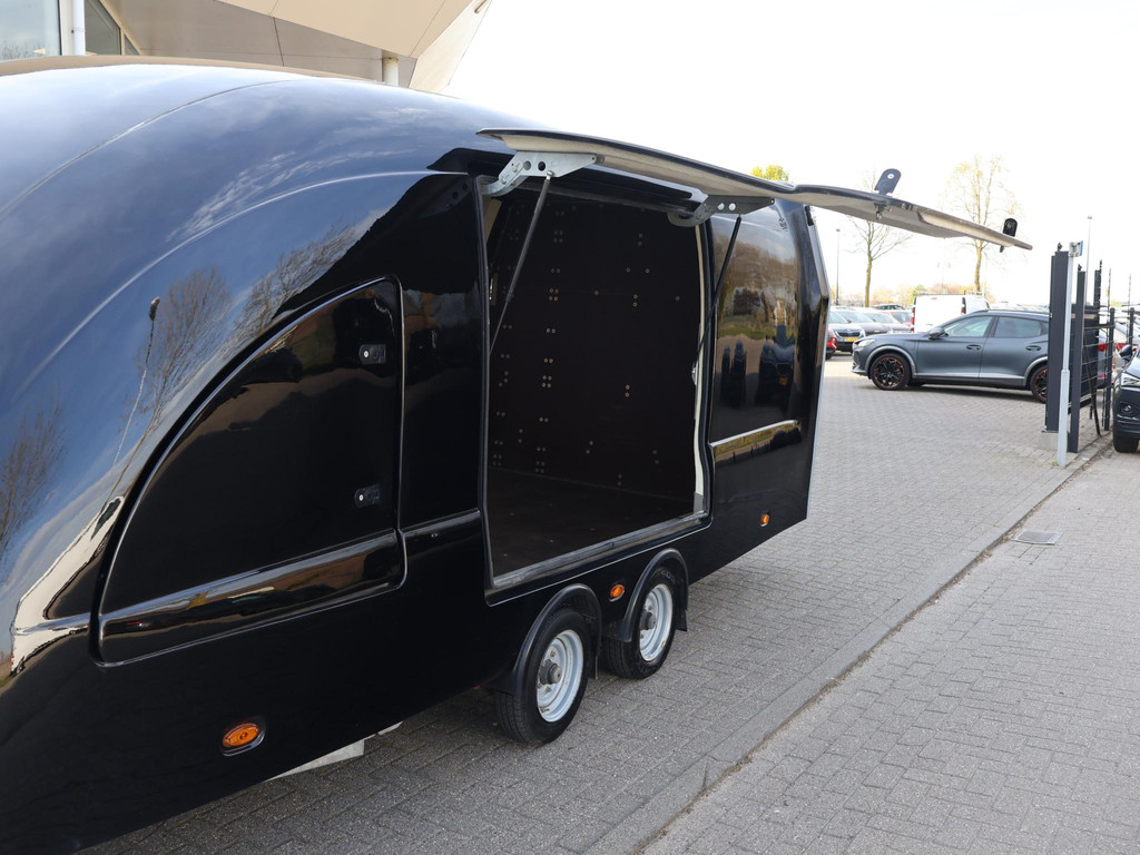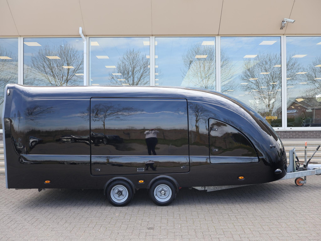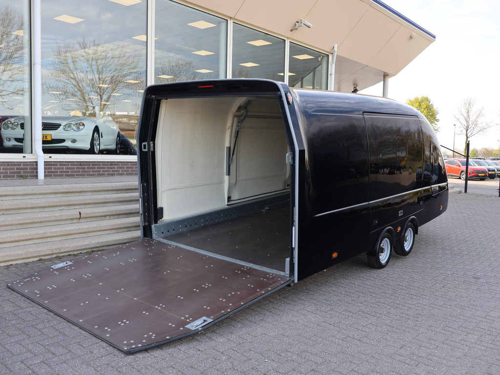 Woodford gesloten shuttle uit de RL5000 serie en dan de grootste uitvoering daarvan de RL5042, bij RDW genaamd RL5-042. Autotransporter voor gesloten transport. Gesloten trailer, Race shuttle, Raceauto shuttle. Hydrolische kanteling voor extra lage auto's, 485 cm laadlengte tot aan het schot, Warrior Winch Ninja elektrische lier op 12V accu met afstandsbediening, model 45SPS12 met staalkabel die 2041 kg mag trekken. Origineel Nederlandse shuttle van 02-05-2022, Lengte op kenteken 700 cm, breedte 253 cm, wielbasis 467 cm, Maximumconstructiesnelheid 140 km/h, Tandemasser middenasaanhanger met 2 assen, Laadvermogen op kenteken: 2320 kg, Hoogglans zwarte exterieurkleur,  Breedte binnenzijde 211 cm, hoogte binnenzijde 195 cm. Maximum eigen gewicht 3500 kg, 1180 kg ledig gewicht, Reservewiel, 2 grote zijvleugeldeuren en 2 servicedeuren voor gemakkelijke toegang, Prijs is exclusief BTW.