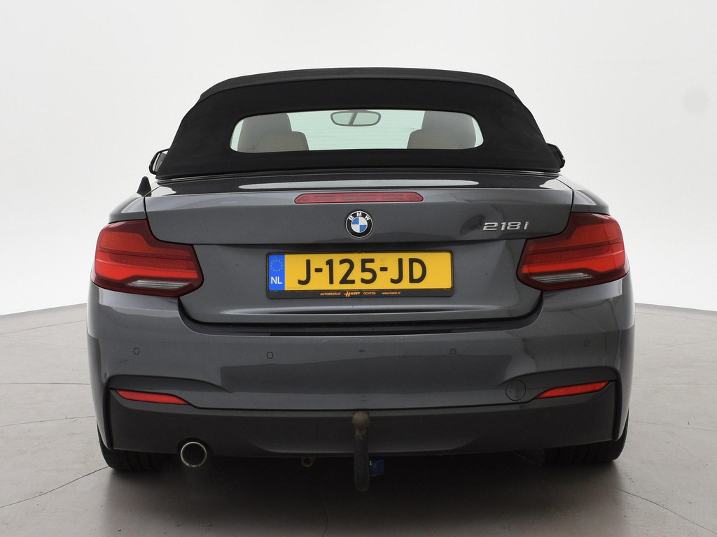 218I Cabrio Automaat, High Executive uitvoering, Mineralgrau metallic met cognac volledig leder sportinterieur met verlengbaar zitvlak met stoelverwarming, Afneembare Trekhaak, M-Sportstuurwiel, Blauwe dashboard inleg, Navigatie, Climate control, LED Koplampen, LED achterlichten, Parkeersensoren voor en achter, Windscherm, Cruise control.